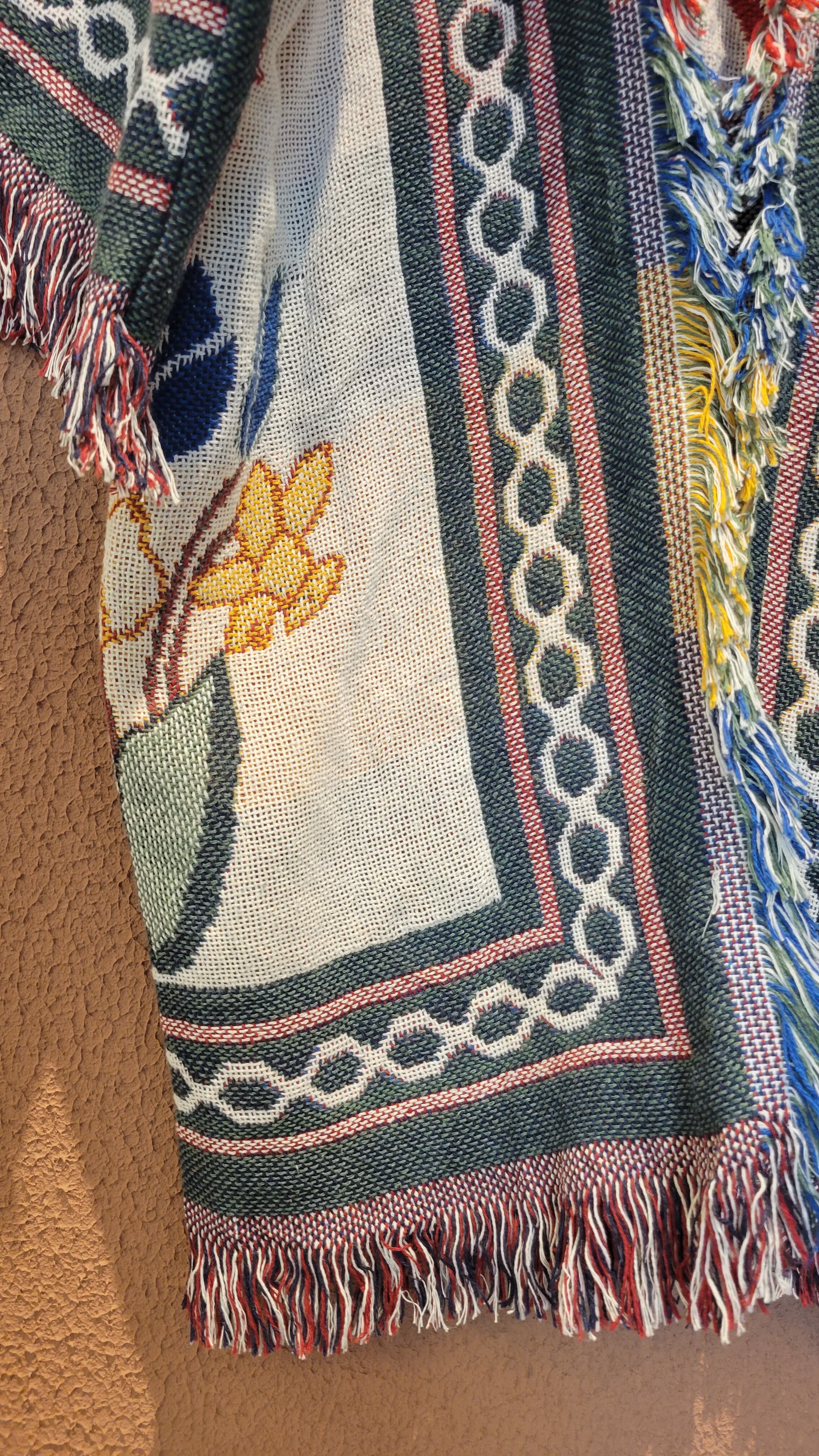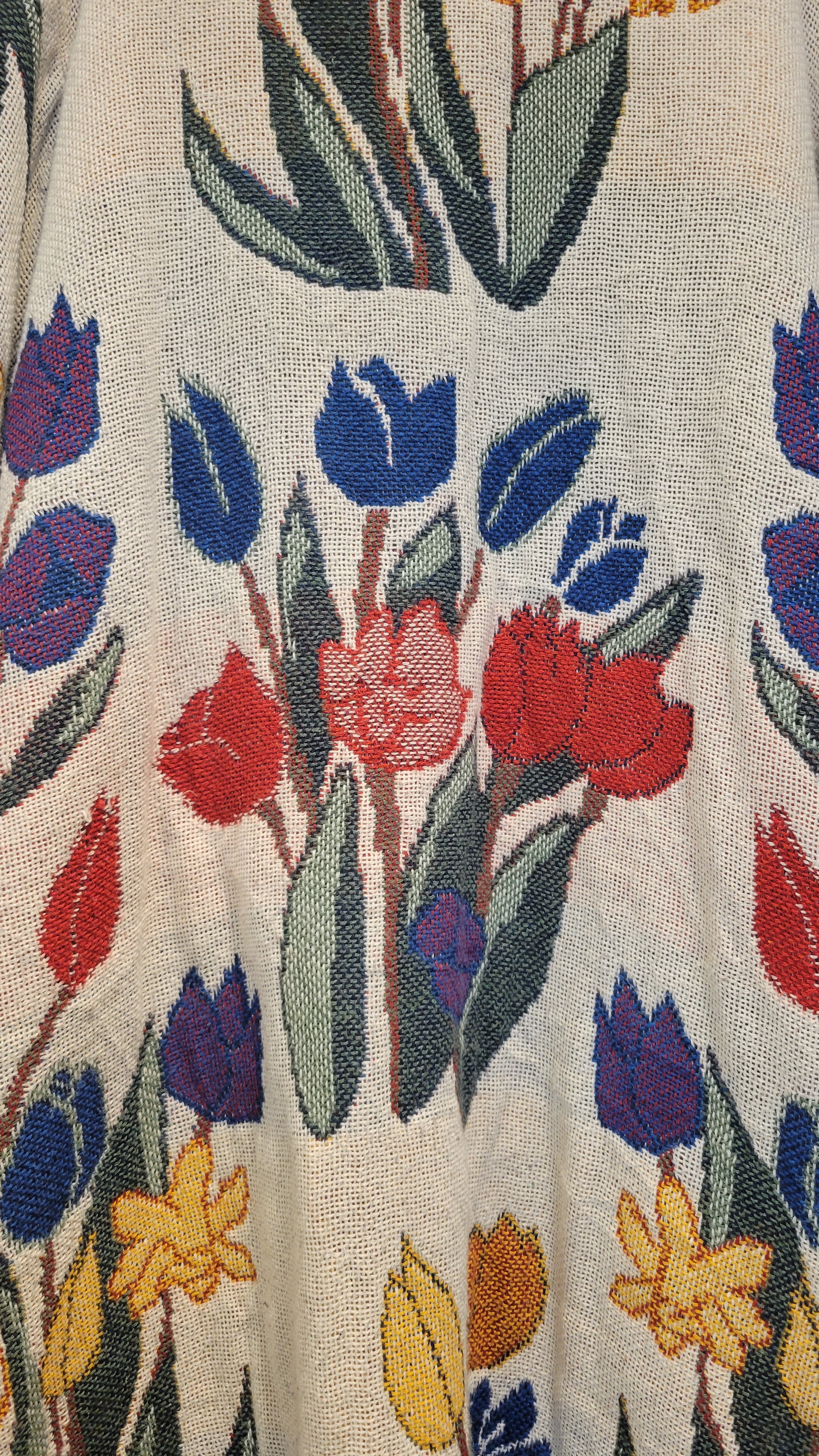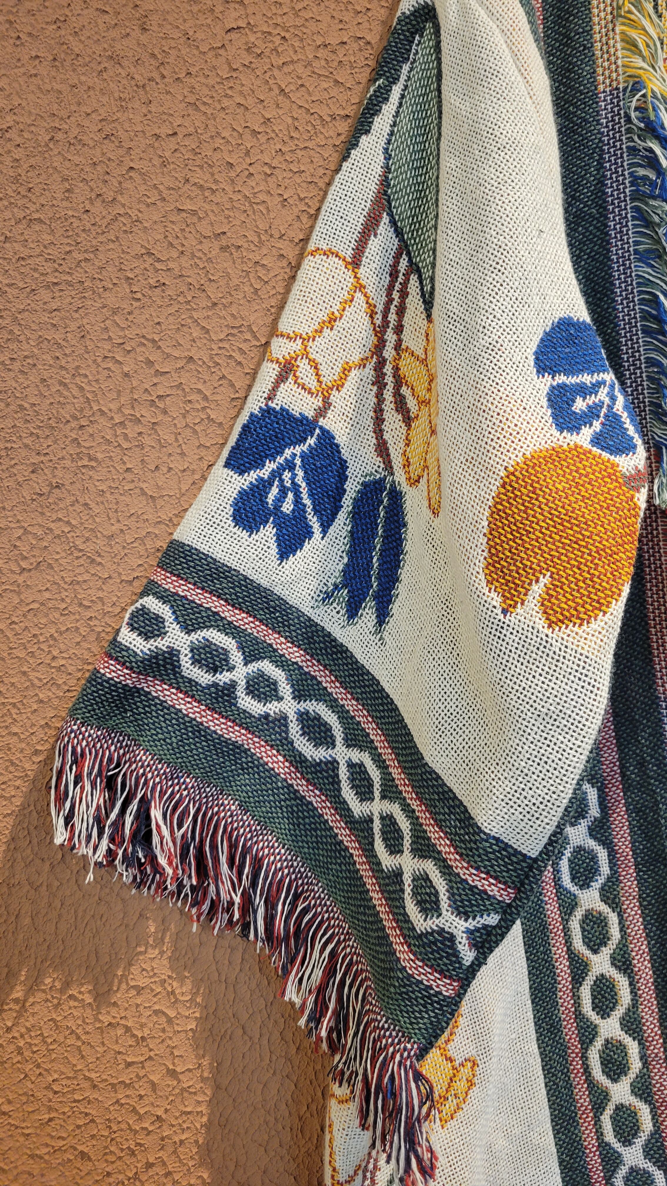 ヴィンテージのブランケットを使用したリメイクガウン。素材表記はありませんがコットンのようです。着心地の良いゆったりしたサイジング。膝下辺りまでのハーフガウン丈でブランケットを1枚まるごと纏ったような着心地です。お部屋の中での防寒にもぴったりです。