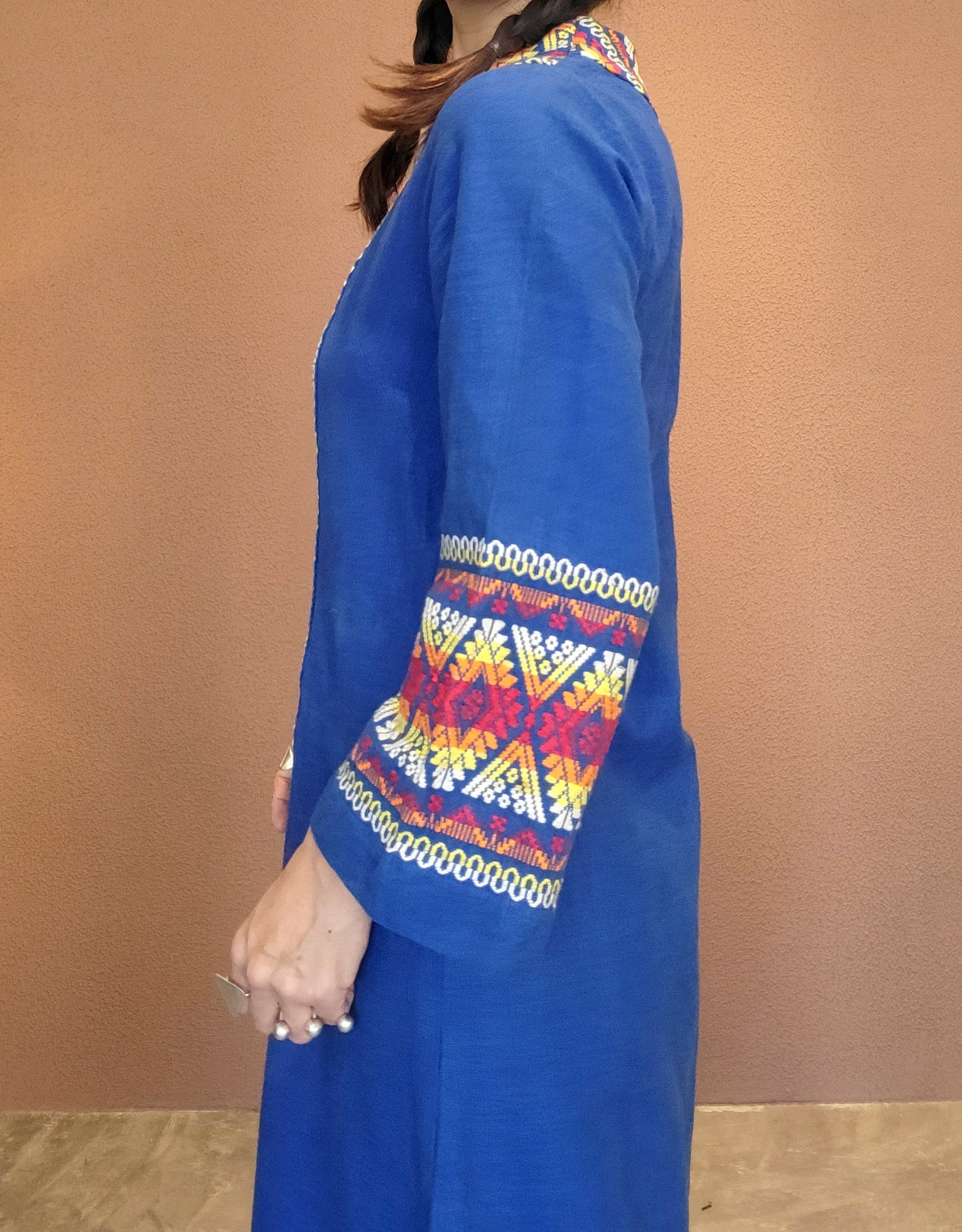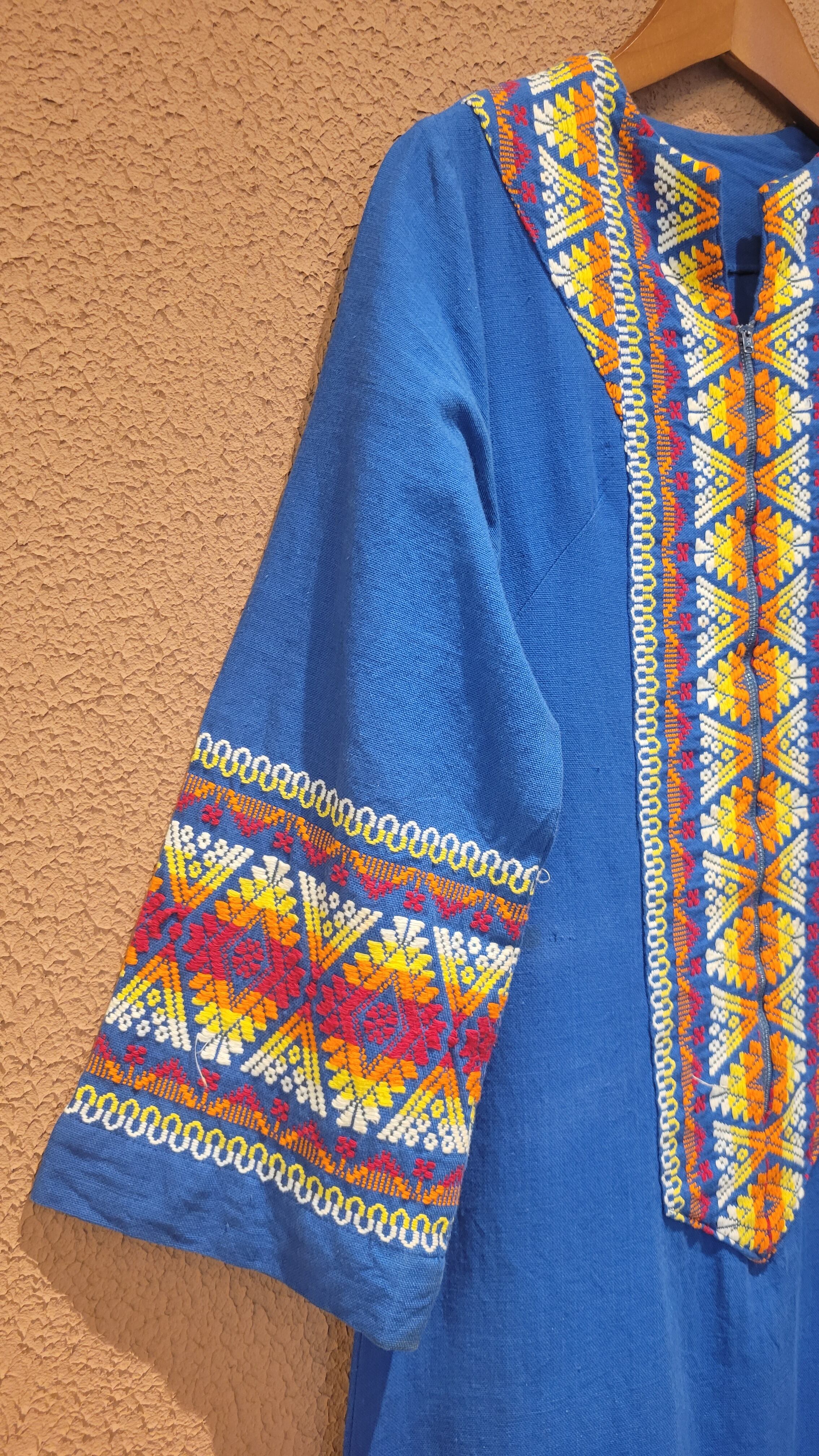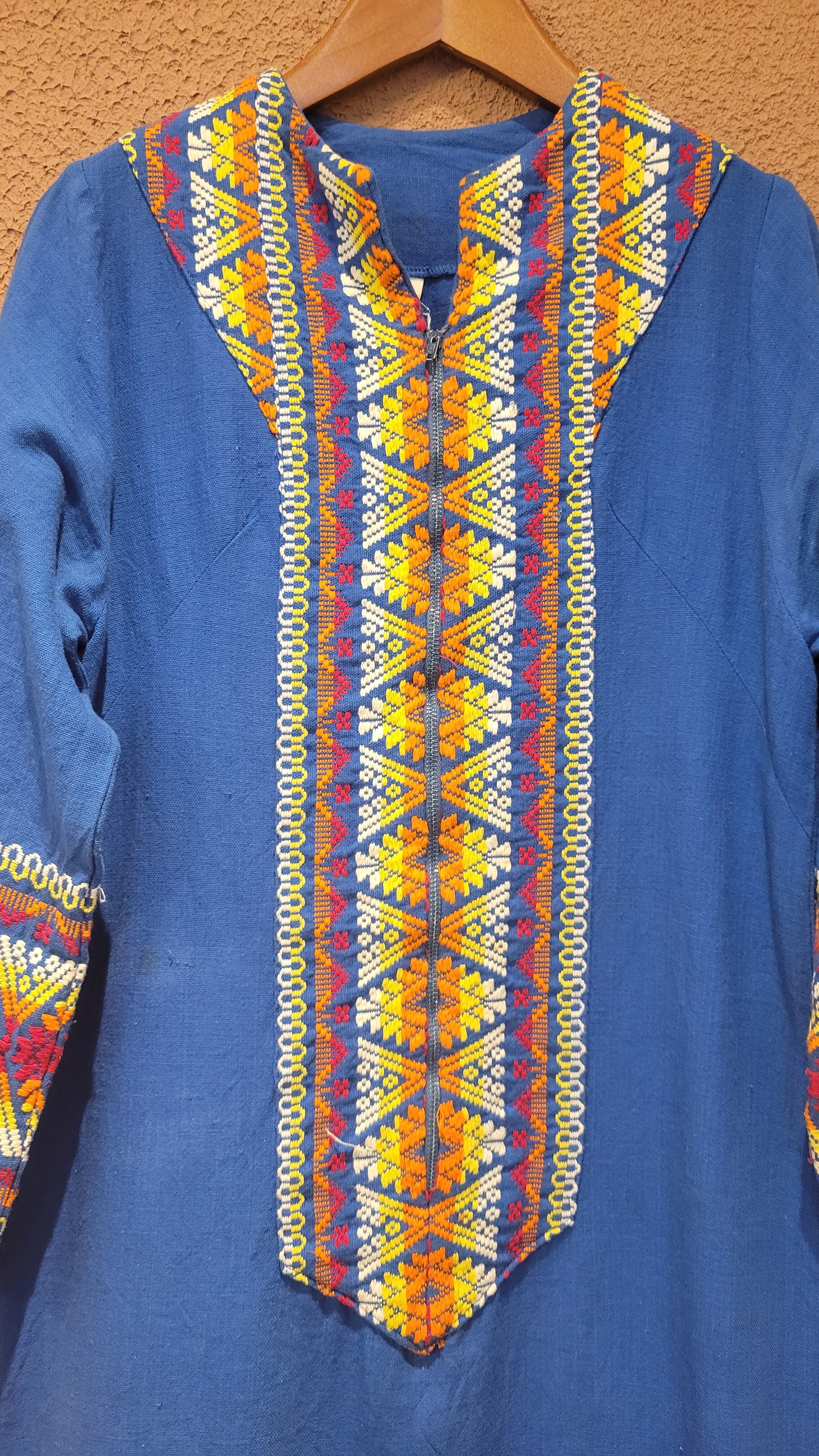 グアテマラ製のヴィンテージマキシワンピース。しっかりしたコットン素材で着用時にもきれいなシルエットをキープできます。フロントハーフジップで着脱がスムーズ。グアテマラの伝統的な幾何学模様の織りが美しいワンピースです。