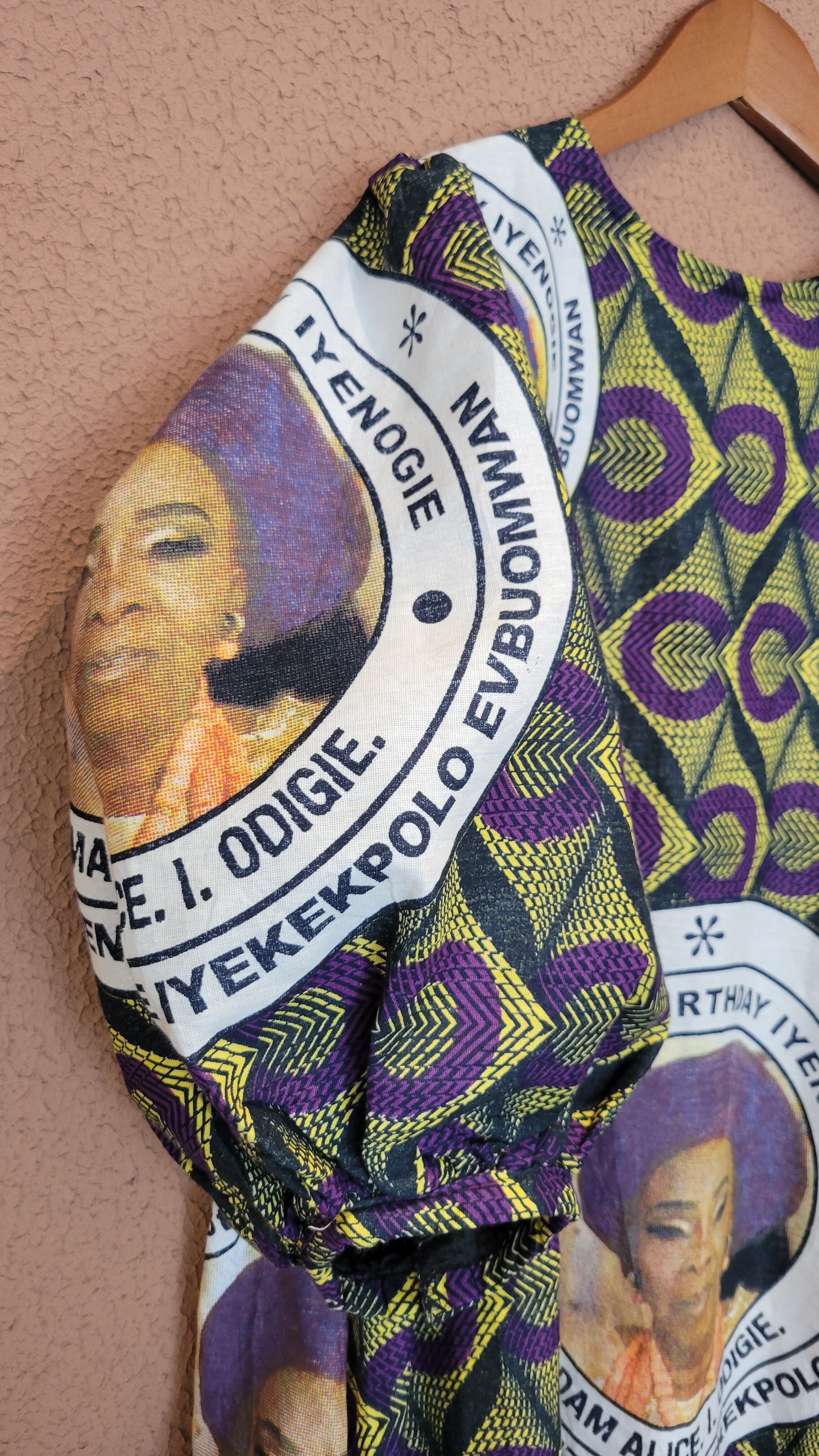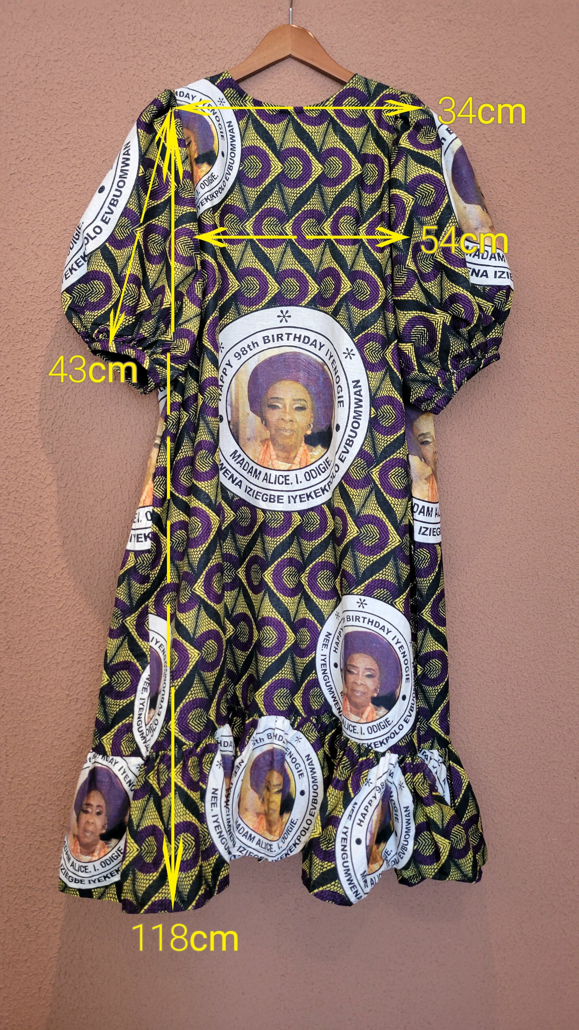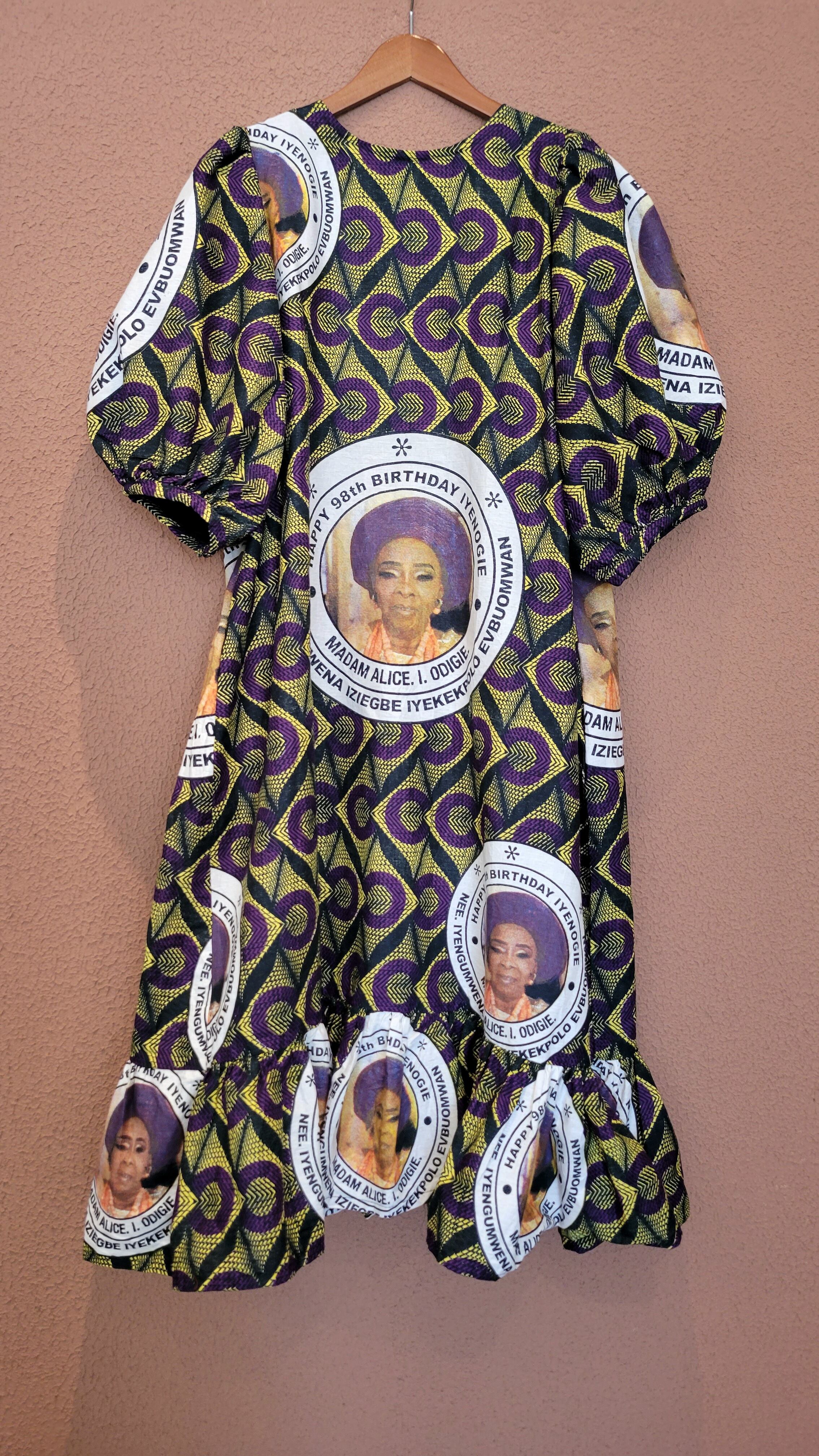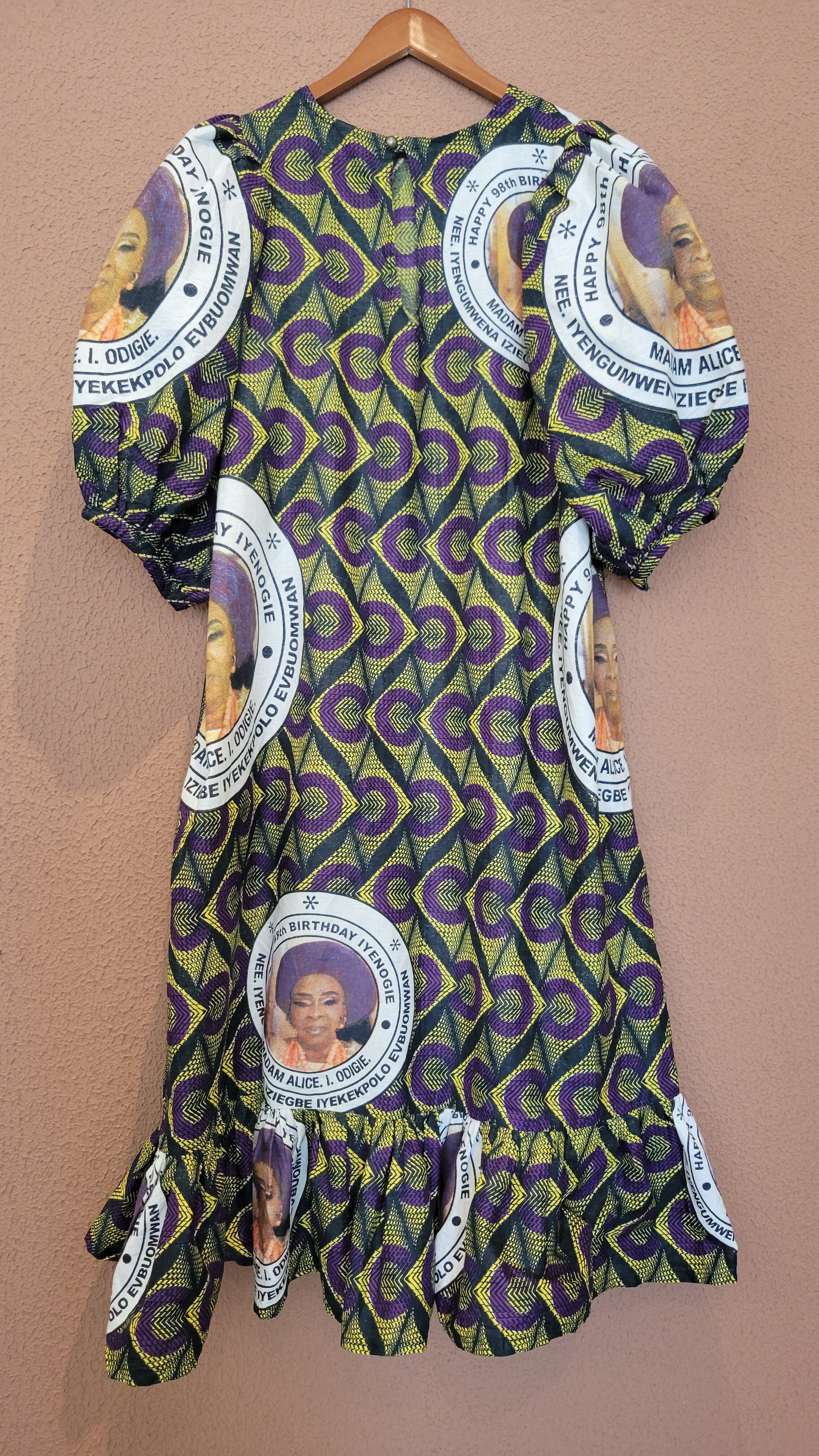 ヴィンテージのアフリカンバティックワンピース。素材はコットンです。バティック特有の張り感があり着用時にもふんわりシルエットをキープ。インパクト強めのプリントですがたっぷりのボリュームスリーブと裾フリルデザインがちゃんとおしゃれ感漂うデザインワンピースに仕上げています。