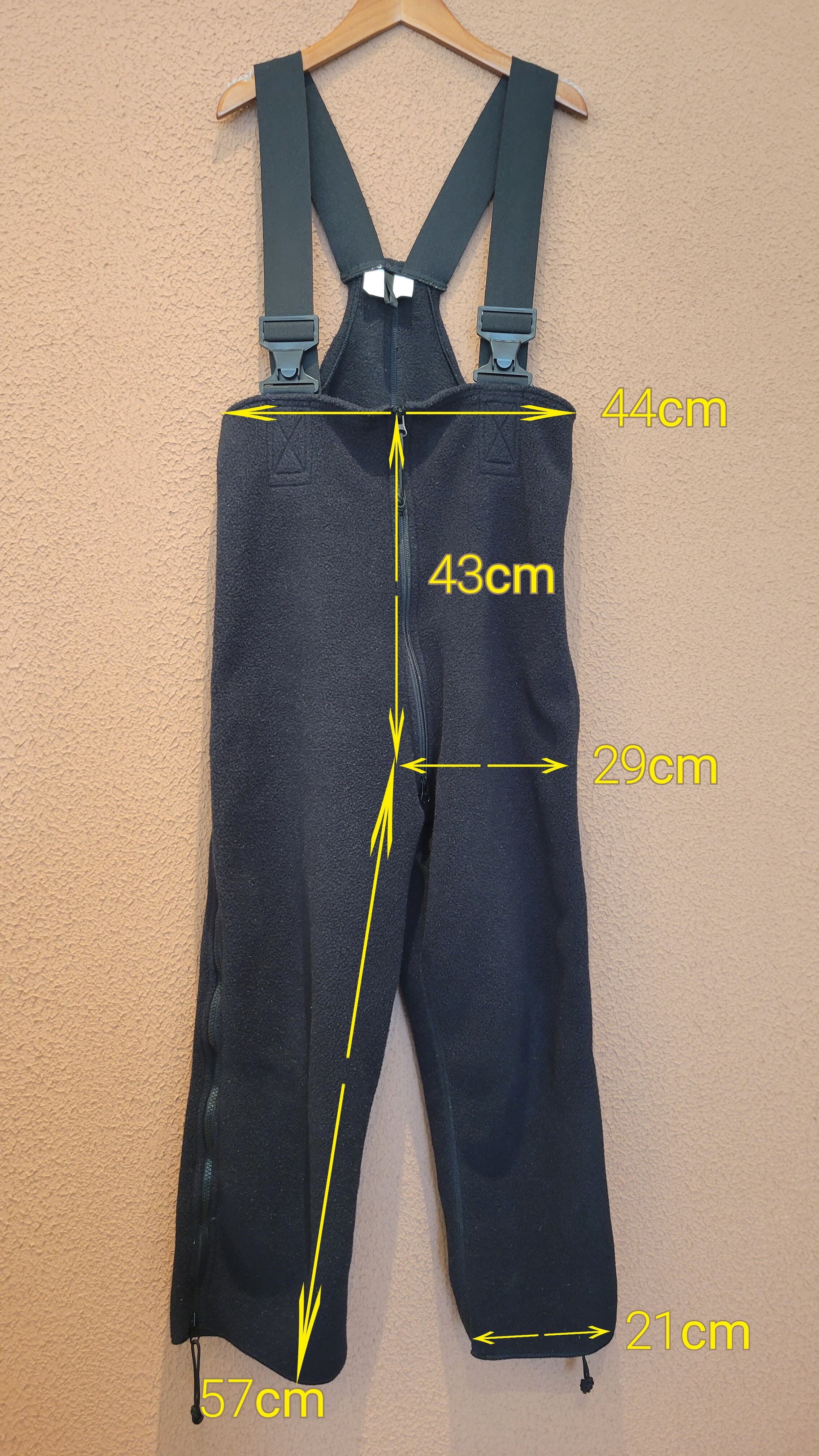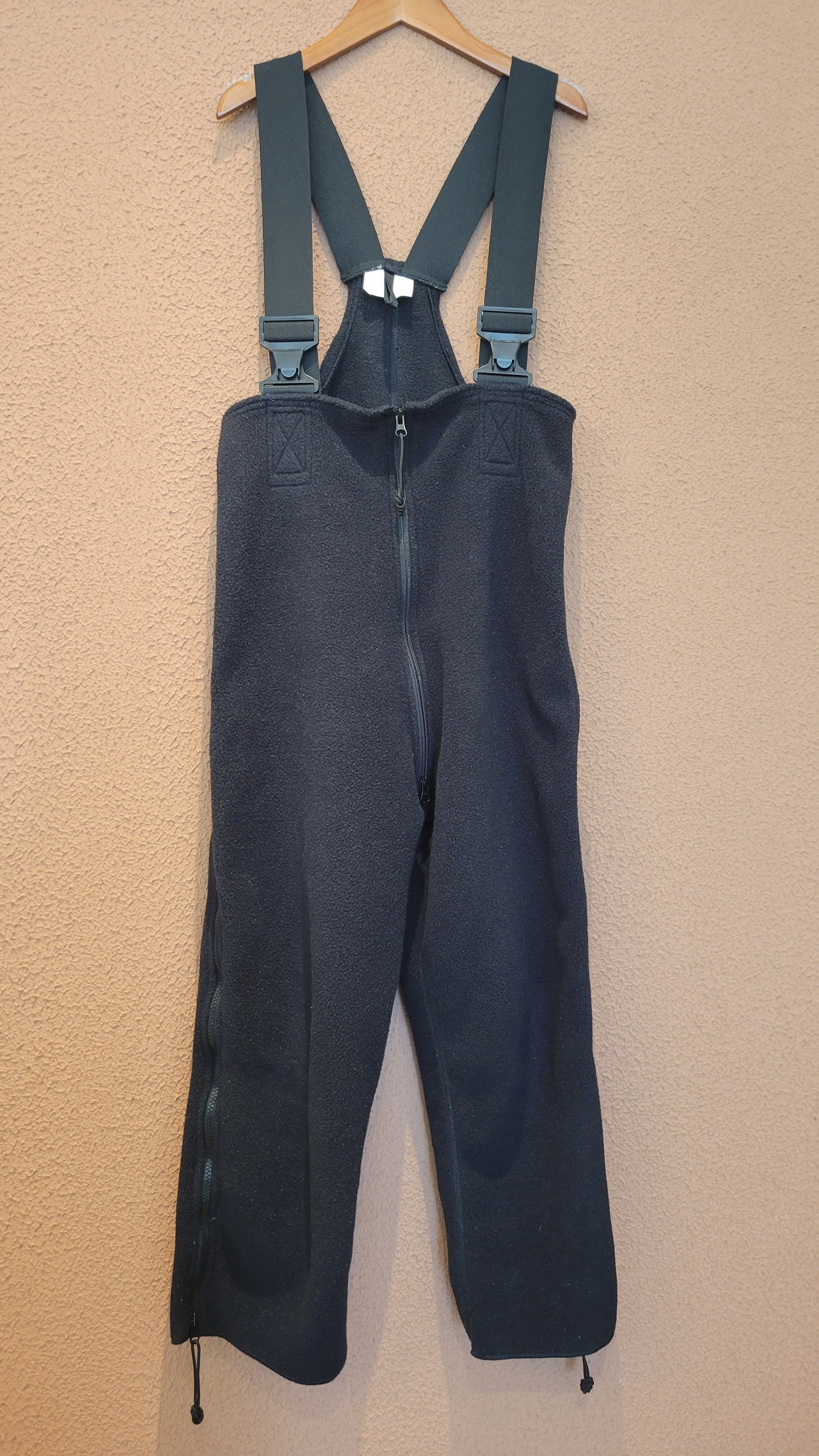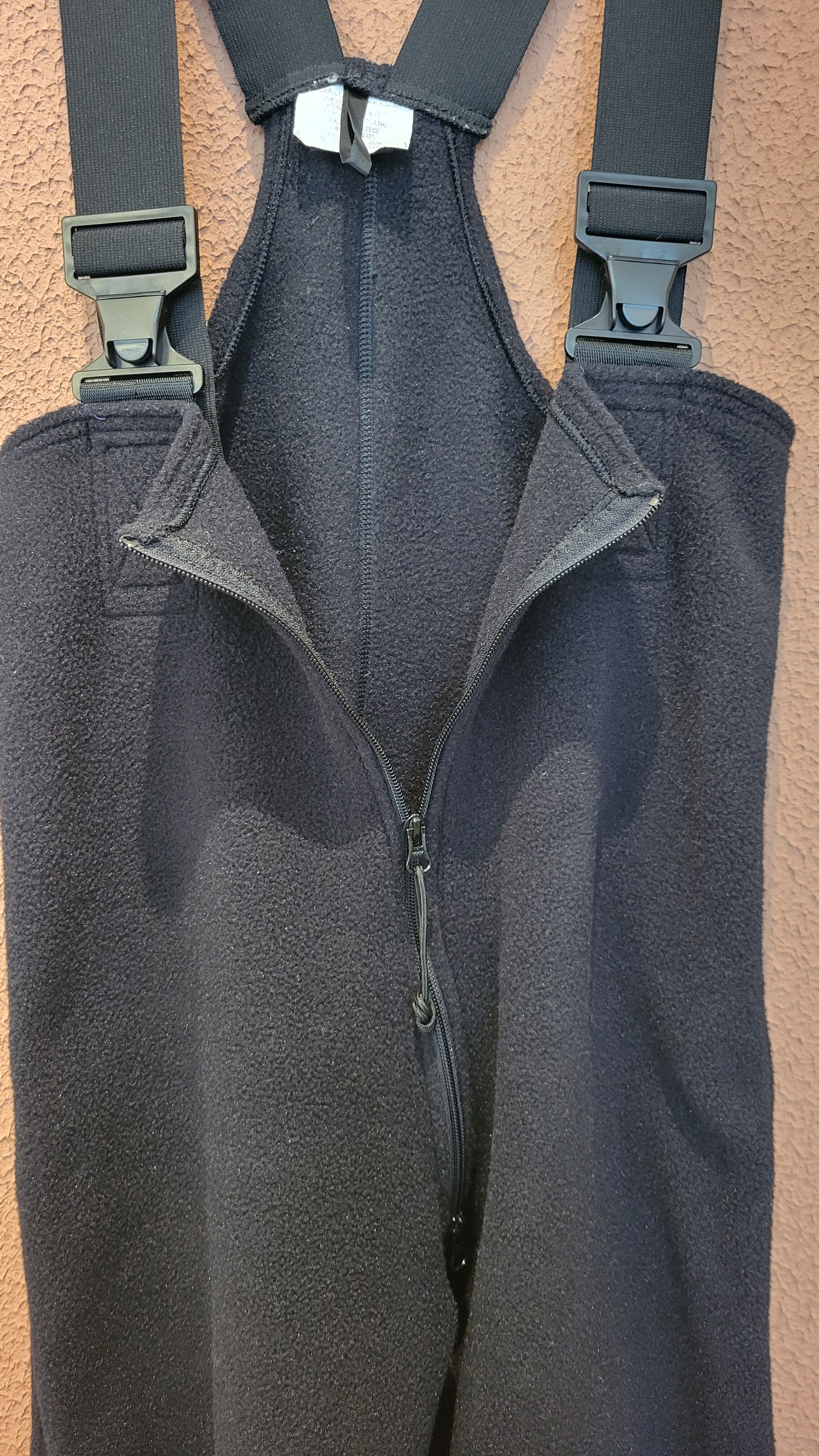 Usedのフリースパンツ。肩紐はゴムで長さの調節が可能です。フロント、サイドにジッパーがあり、サイドのジッパーは裾までフルオープンできます。表記サイズは Small/Short. ミリタリーのライナーバンツのため保温性に優れています。履き心地もストレスフリーで実用性、デザイン性に優れ日常使いにぴったりです。