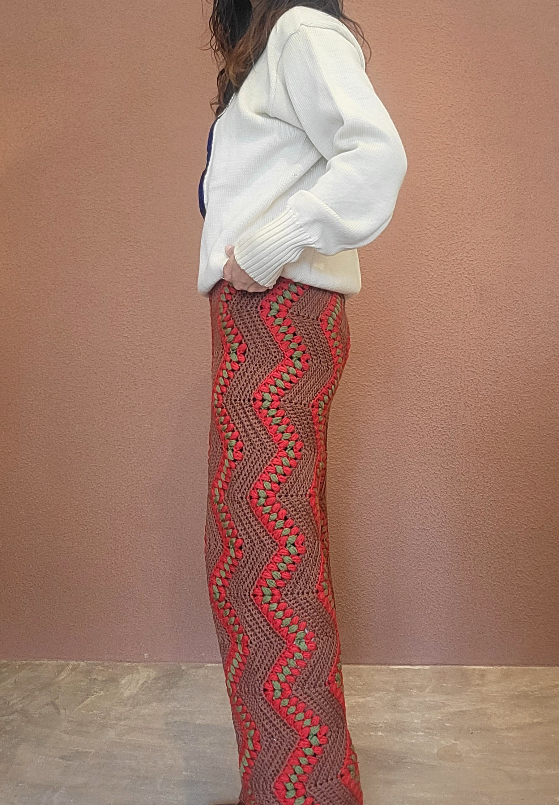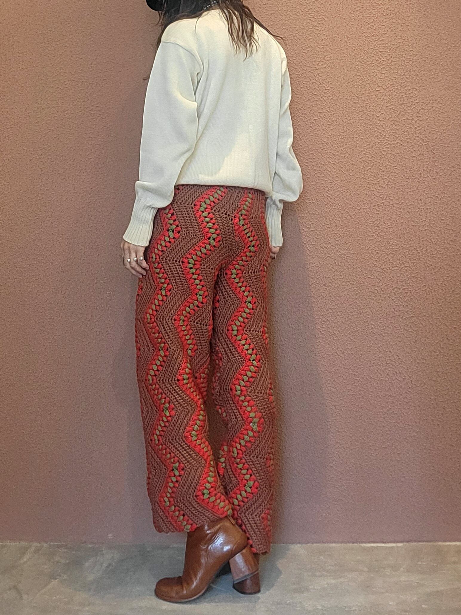 ヴィンテージのグラニーニットを使用したリメイクパンツです。左右のレングスが違います。