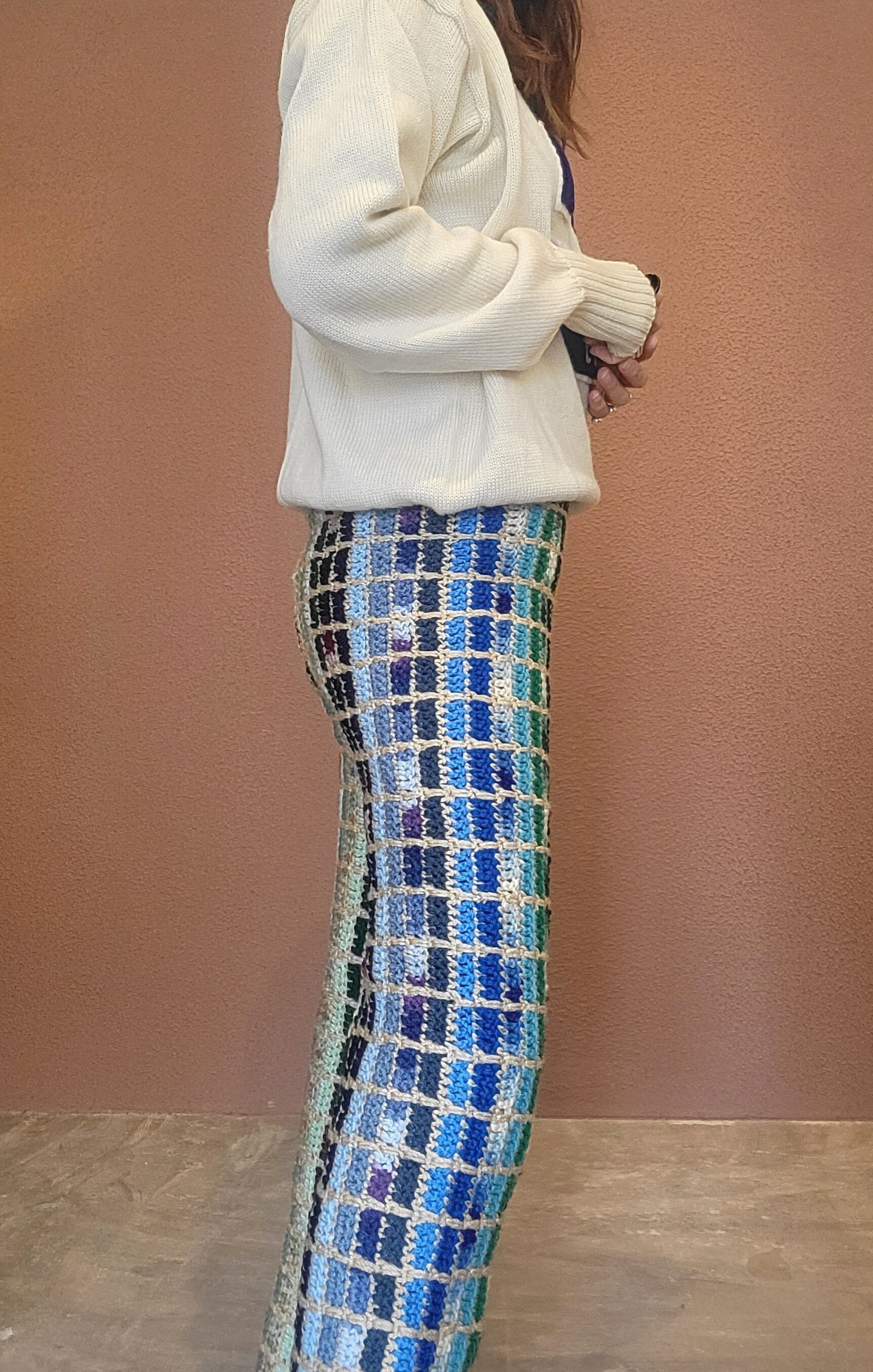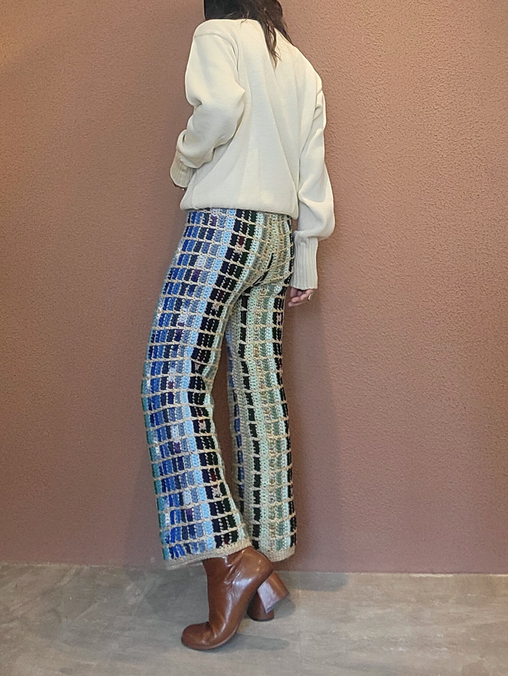 70sのヴィンテージグラニーニットを使用したリメイクイージーパンツ。ウエストゴムです。しっかり厚手のグラニーで保温性に優れます。若干の伸縮性があります。インナーにペチコートやレギンスパンツの着用をおすすめします。着画はハーフ丈のペチパンツを履いています。