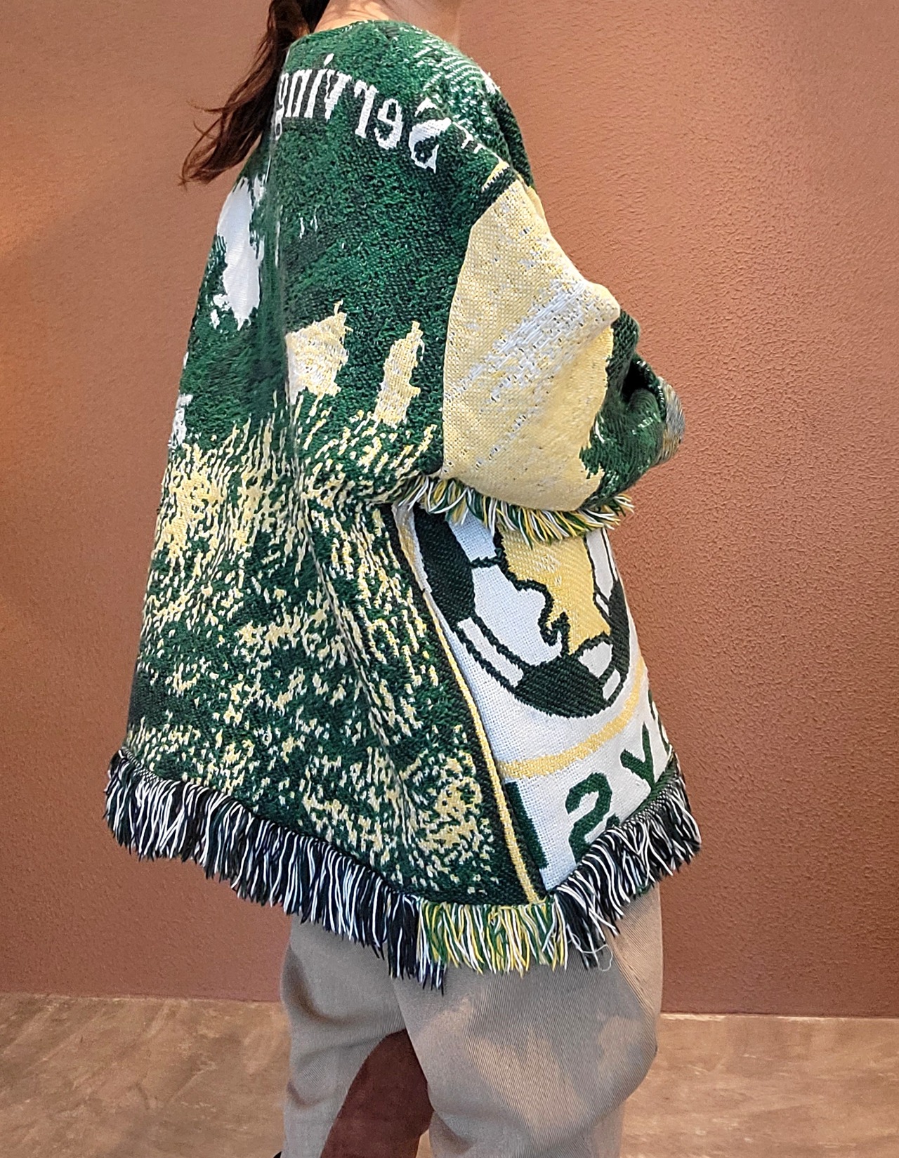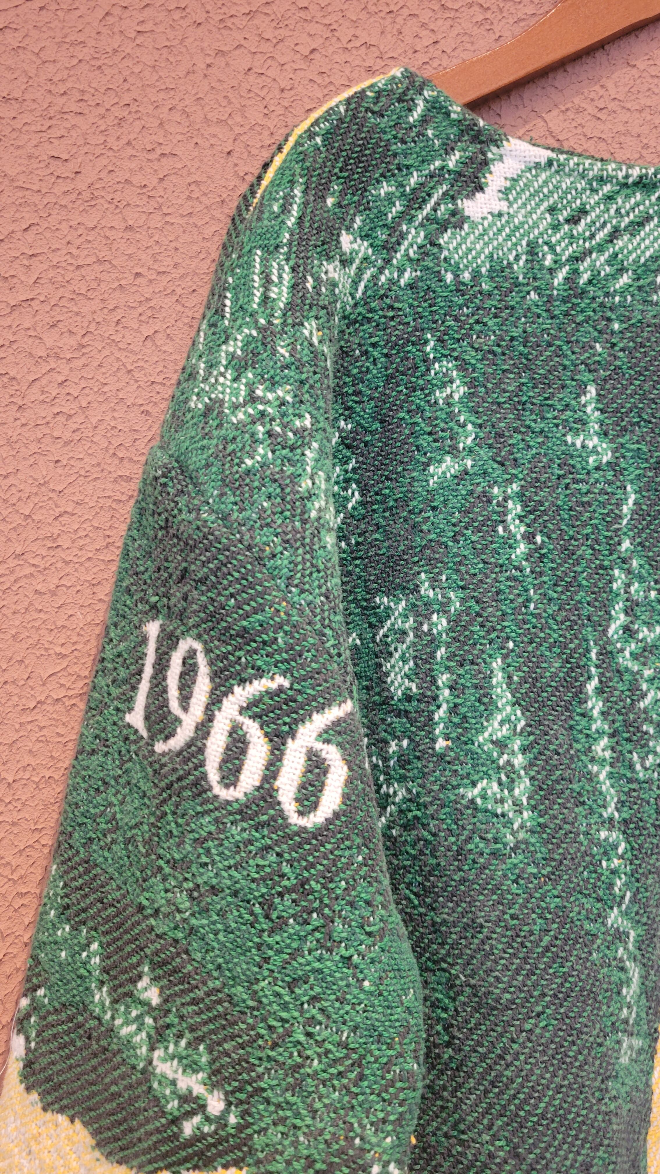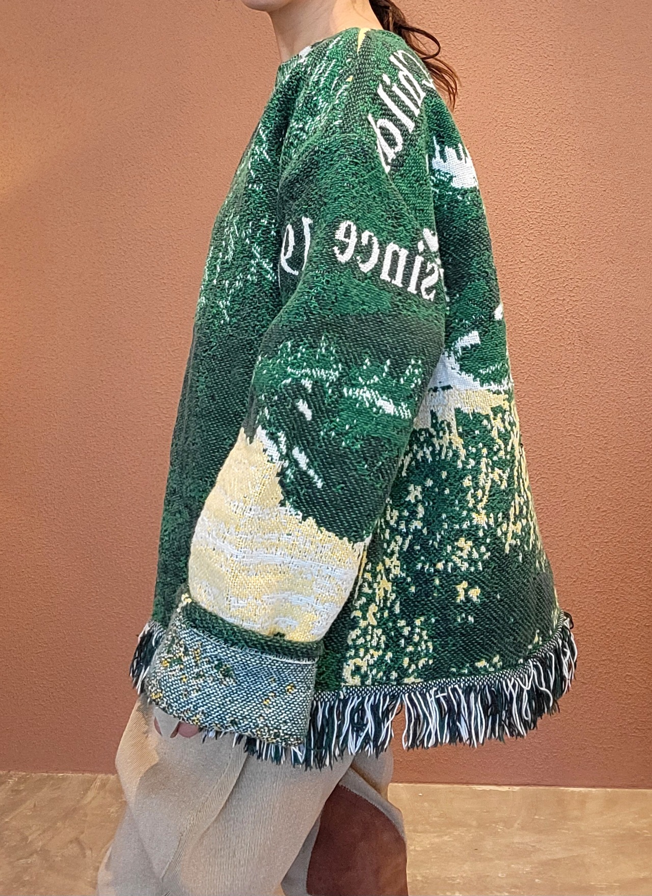 ヴィンテージのブランケットを使用したリメイクプルオーバートップス。素材はコットンです。まだ張り感の残るやや厚手の素材で重量があります。着用していくうちに柔らかく馴染んできます。男女兼用可能なサイズで男性はもちろん、女性がオーバーサイズで着ても可愛いです。