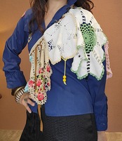 頭からすっぽり被ったり、ワンショルダーで着てみたり、腰に巻くようにしてペプラム風にしたりと、色々なアレンジのきくプラスアイテムです。