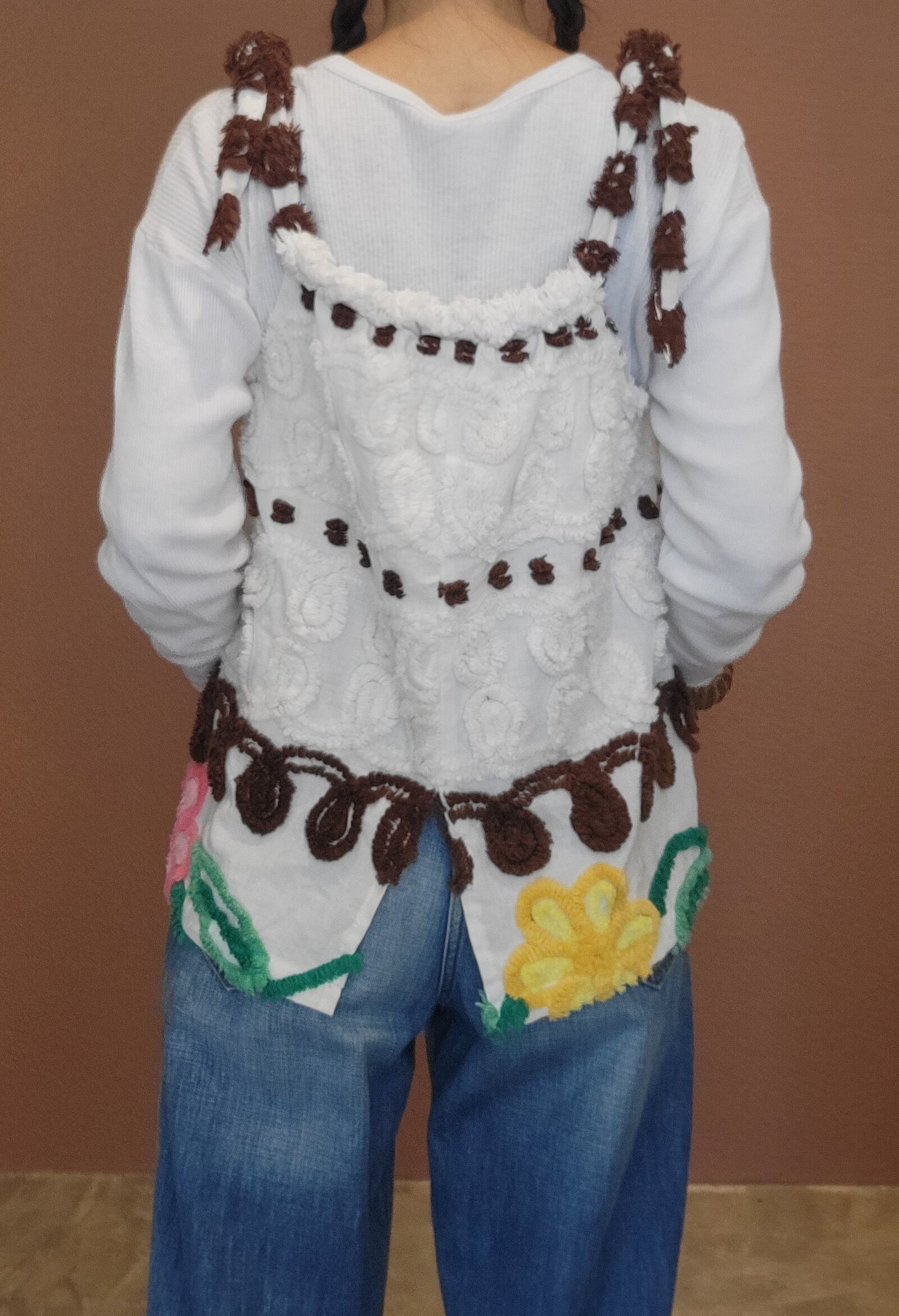 ヴィンテージのシェニール生地を使用したリメイクトップスです。