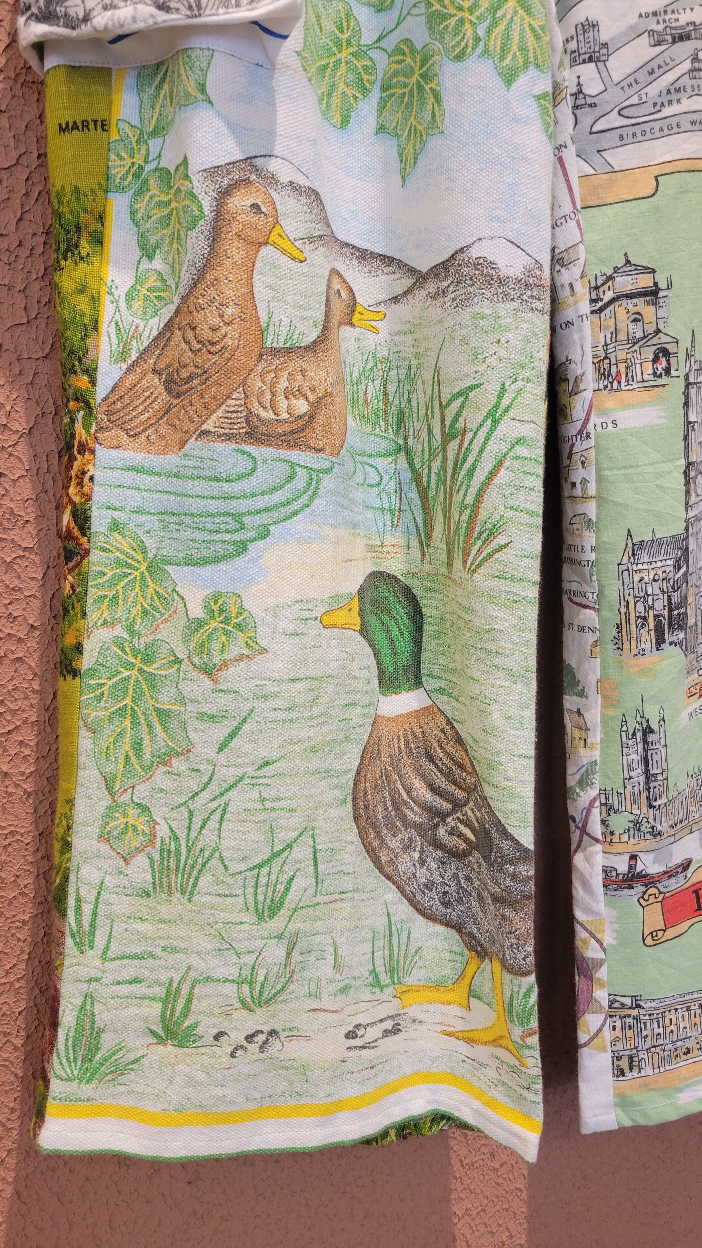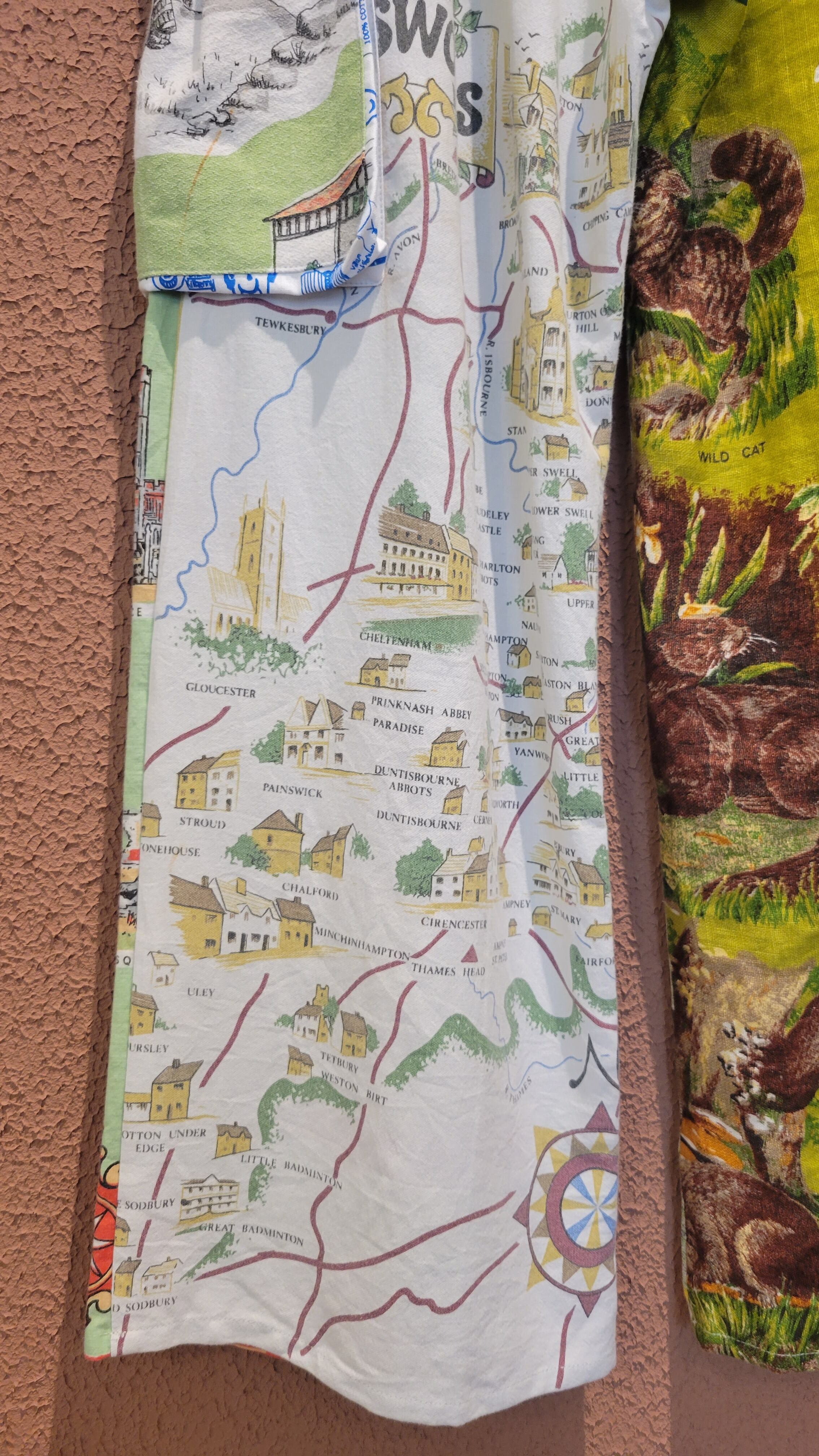 ヴィンテージのティータオル生地を使用したリメイクカーゴパンツです。