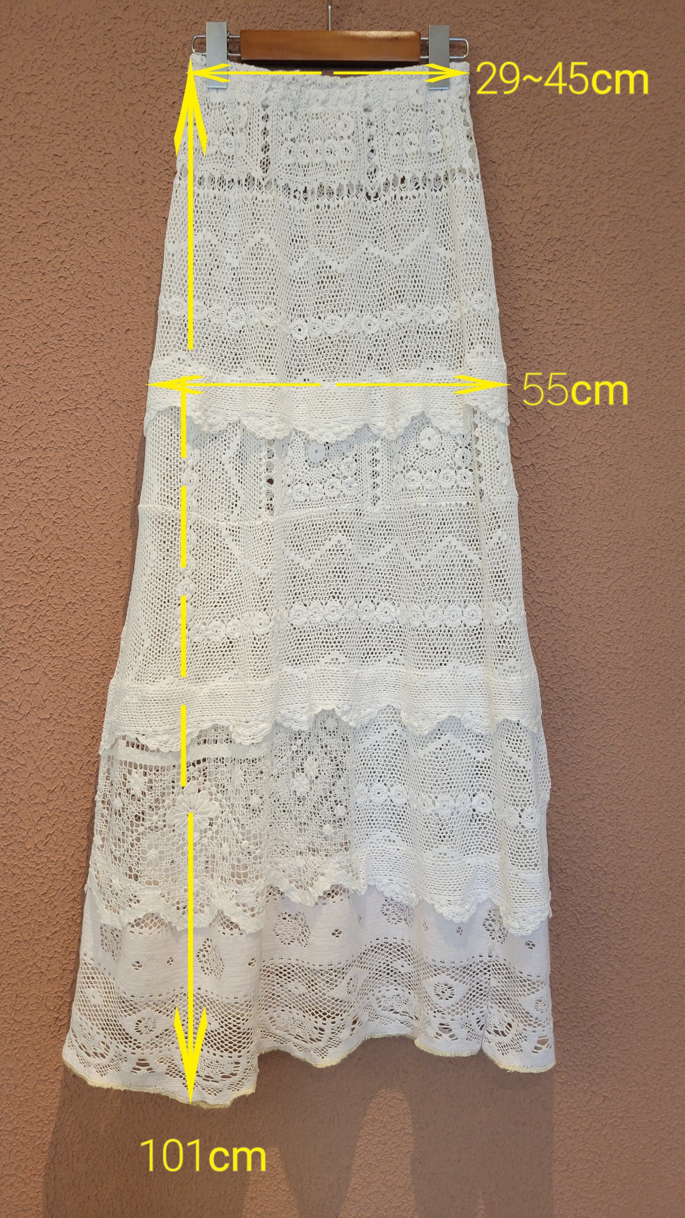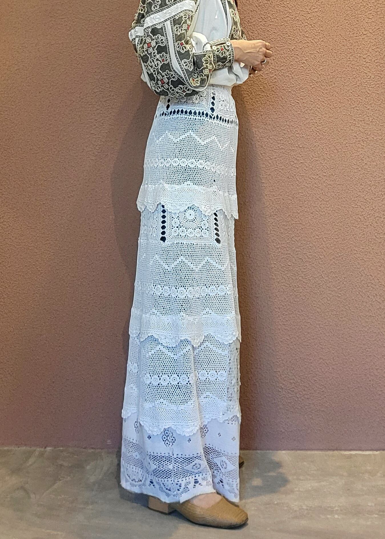 ヴィンテージのクロシェ編みレースを使用したリメイクマキシスカートです。