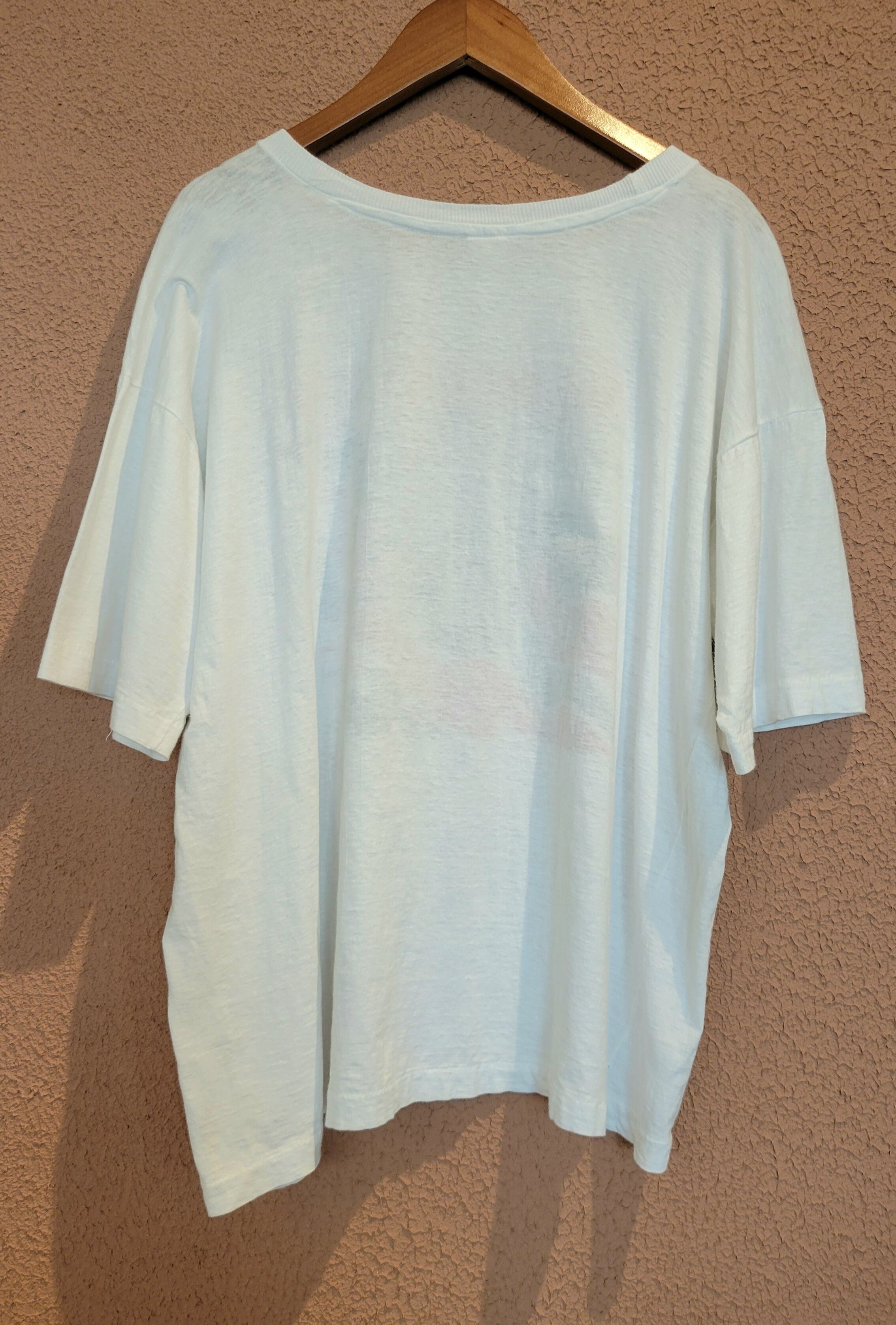 Used のプリントTシャツです。素材はコットンです。シミや生地ダメージはありませんが生地が薄くなっており、首回りのリブもゆるくなっています。古着ならではのくったり感、こなれ感を楽しみたい方におすすめです。