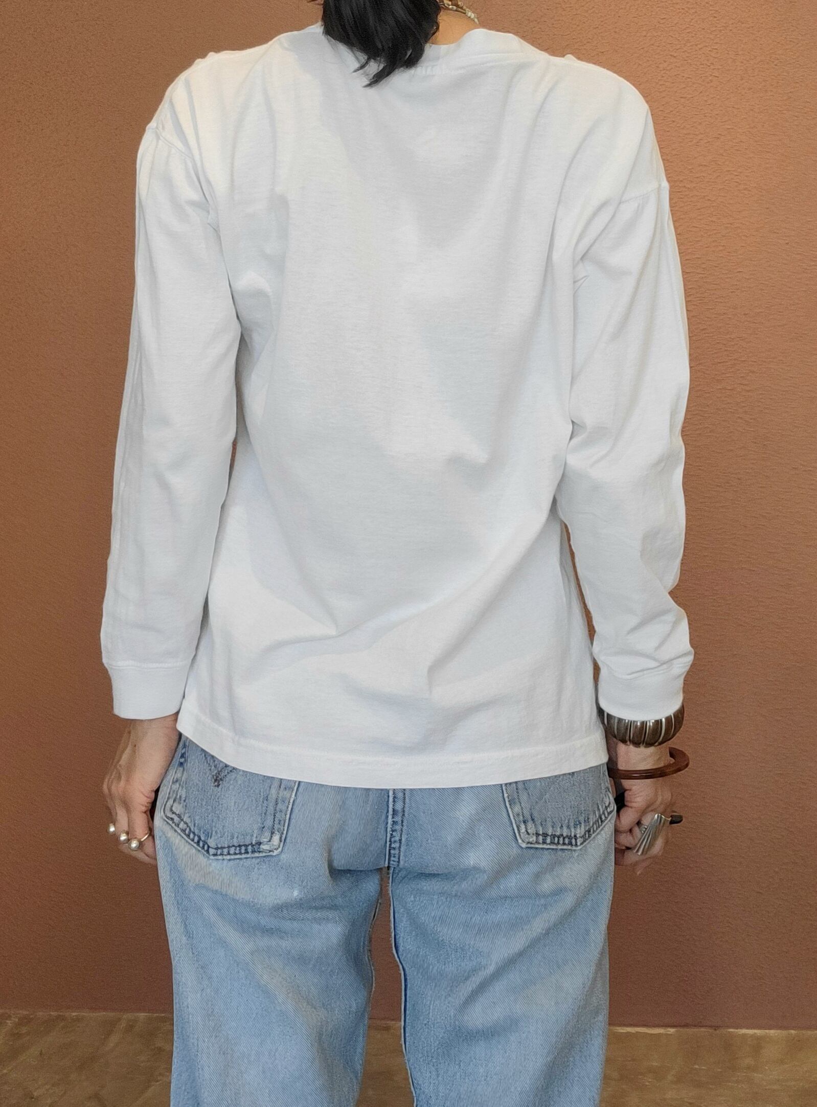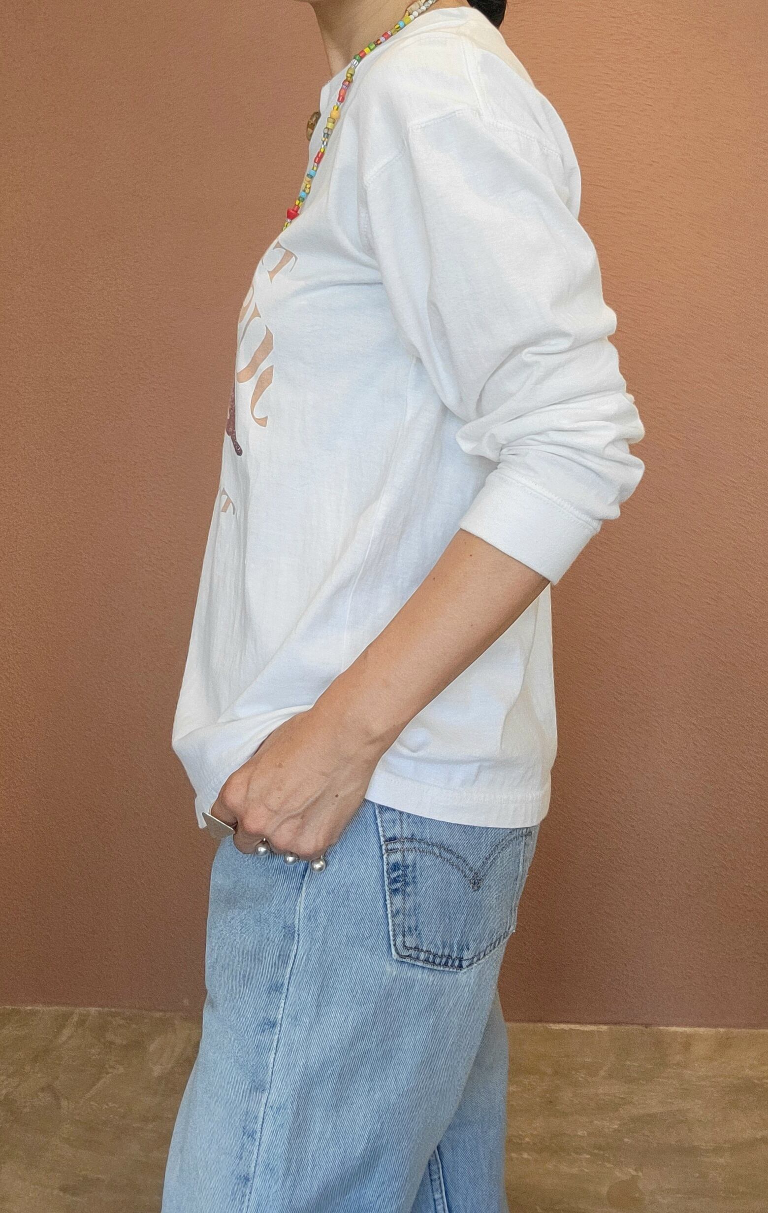 UsedのプリントロングスリーブTシャツ。素材はコットンです。ジャストサイズできれいめに着られます。