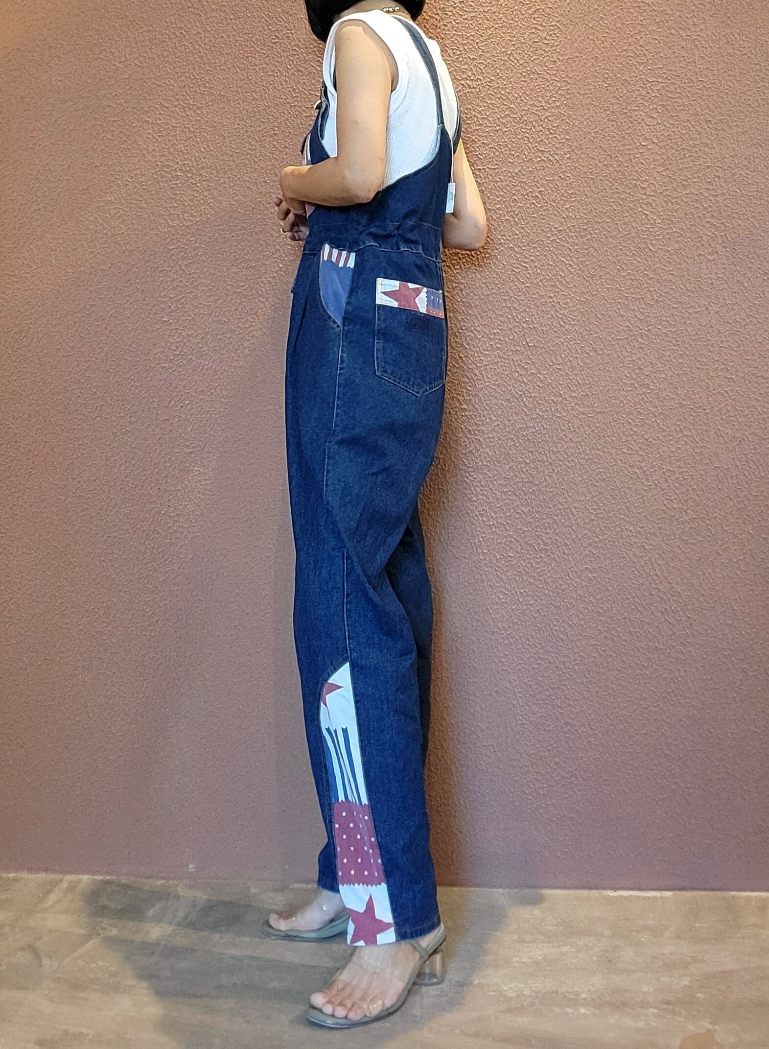 80s ヴィンテージ デニムサロペット。やや薄手のデニムのため柔らかく軽量です。肩紐の長さは調整可能。ウエストにドローコードが通っておりこちらも調整可能です。腰周り~わたりにかけてはゆったり、膝から裾にかけて細身になるテーパードデザイン。野暮ったさが可愛い80sムードたっぷりのサロペットです。