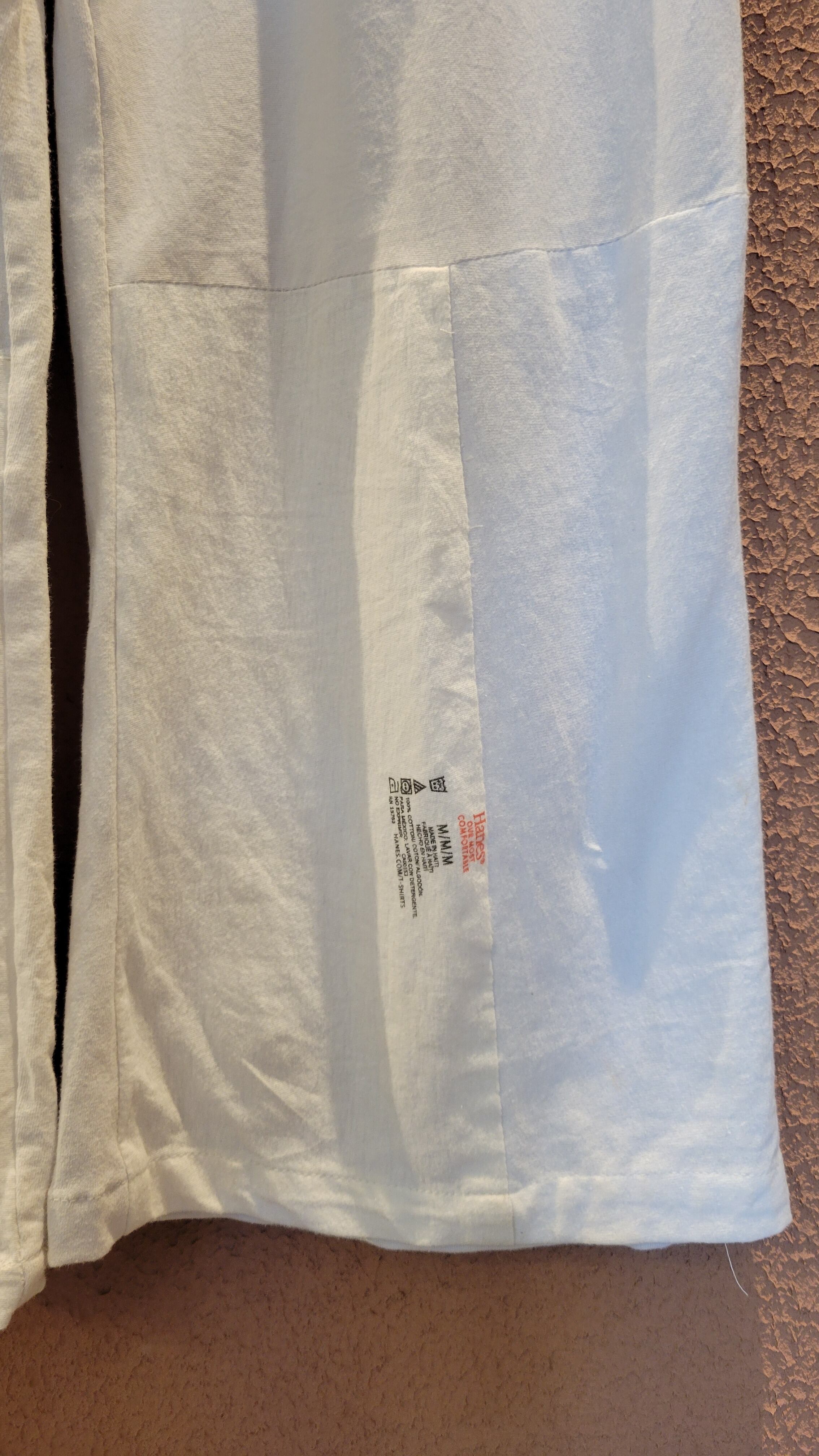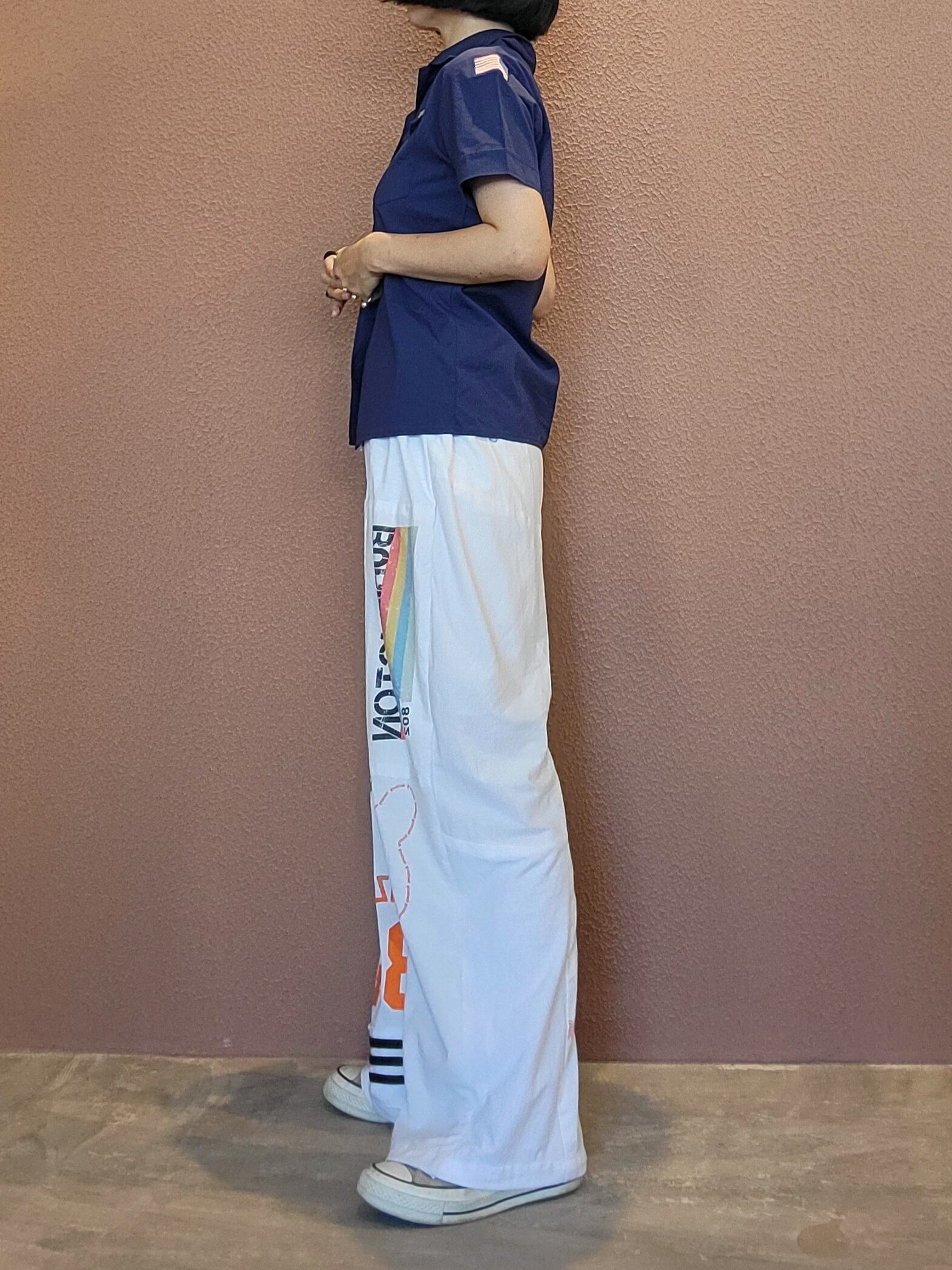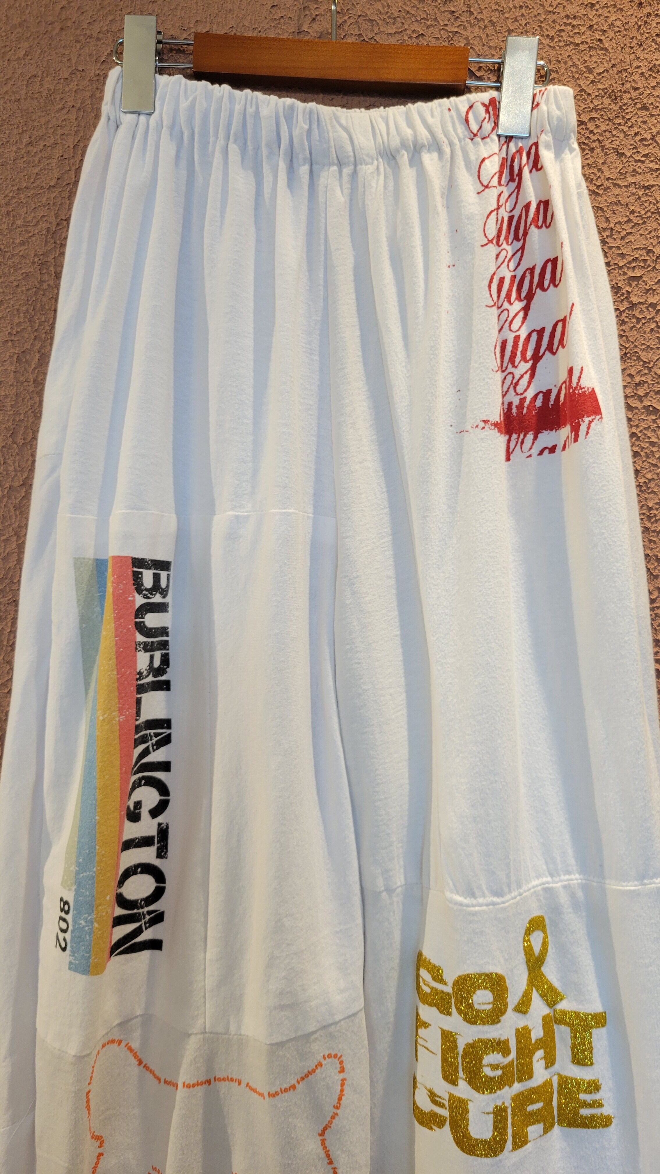 古着のTシャツを裁断したパーツを繋ぎ合わせたリメイクイージーパンツ。ウエストゴム、ポケット無しです。くたっと柔らかいコットン素材でリラクシングな着心地です。