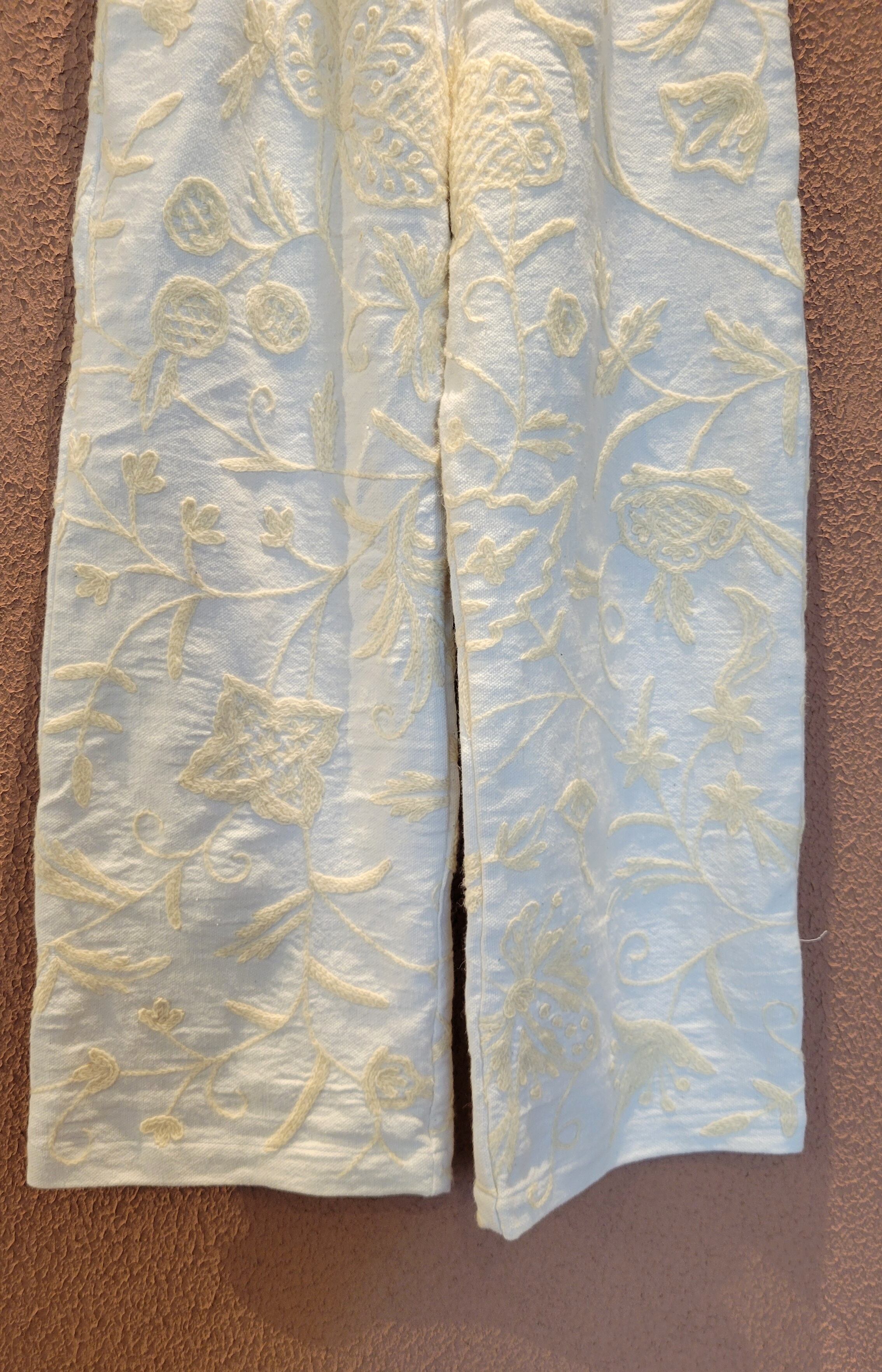 ヴィンテージの刺繍クロスを使用したリメイクイージーパンツ。素材表記はありませんがコットンのようです。ウエストゴム、左右にサイドポケット付き。可愛くて着脱の楽なイージーパンツ、日常使いにぴったりです。