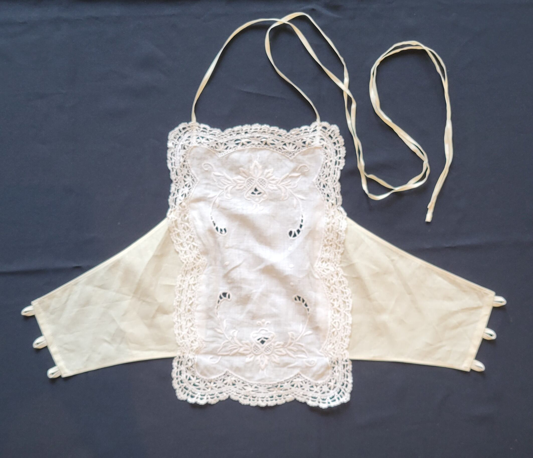 フランスアンティークの刺繍&レース生地を使用したリメイクビスチェ。こちらはパリ在住の日本人パタンナーによるオリジナルアイテムを当店が一部セレクトさせていただいたものになります。素材表記はありませんがコットンのようです。とても肌触りの良い素材です。100年以上の時を経てなお、形を変え受け継がれる上質なアンティークファブリック。コンディションも非常に良く、素材の良さを存分に堪能できる1枚です。