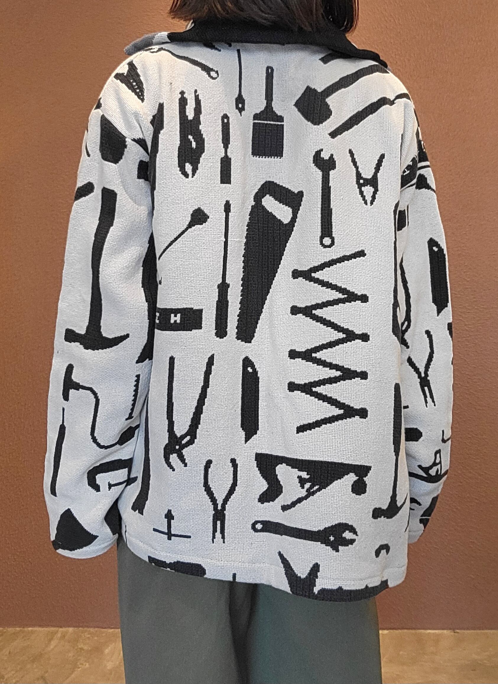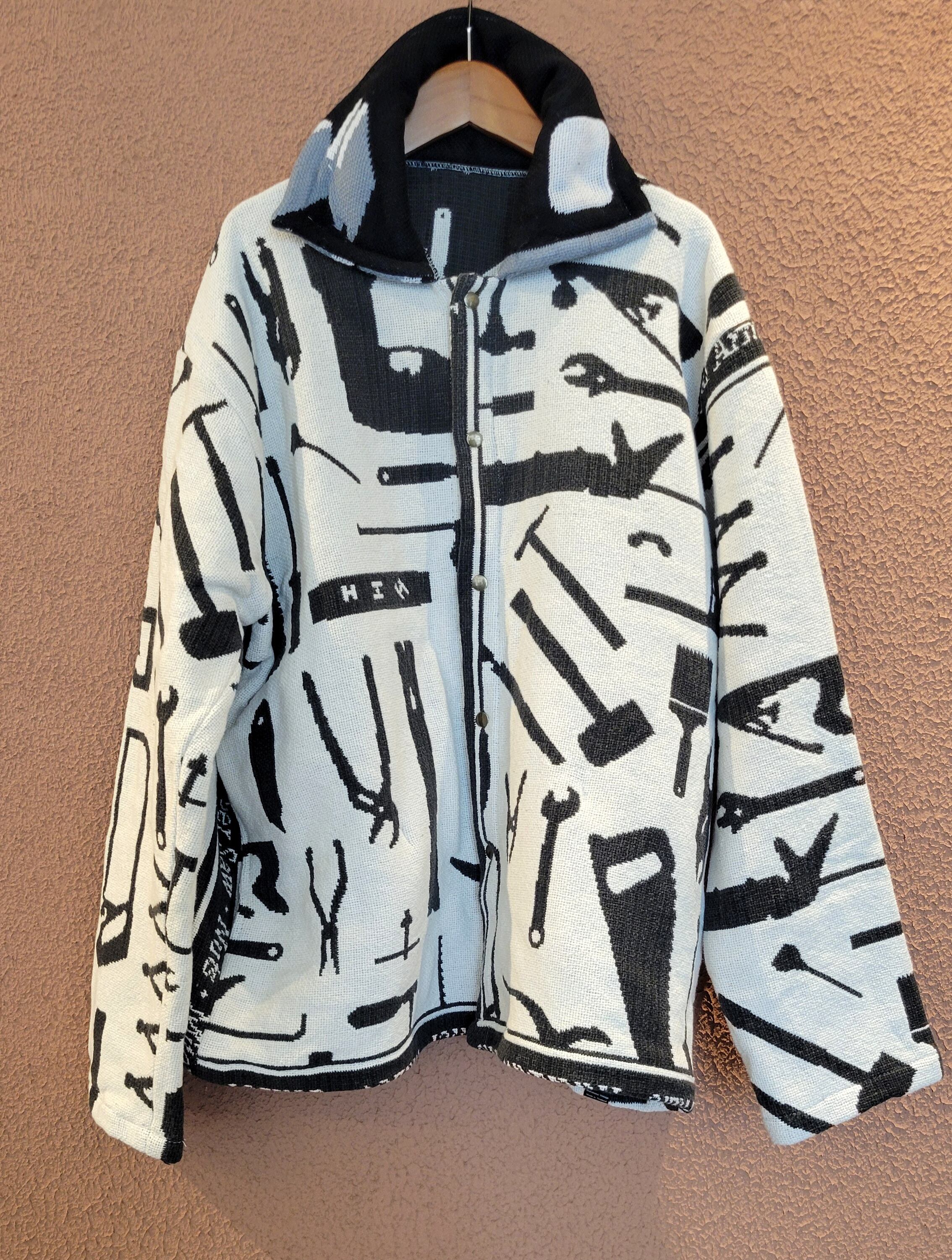 Usedブランケットを使用したリメイクジャケット。素材表記はありませんが厚みのあるしっかりしたコットンのようです。やや重量感があります。フロントはスナップボタン仕様で着脱が簡単です。