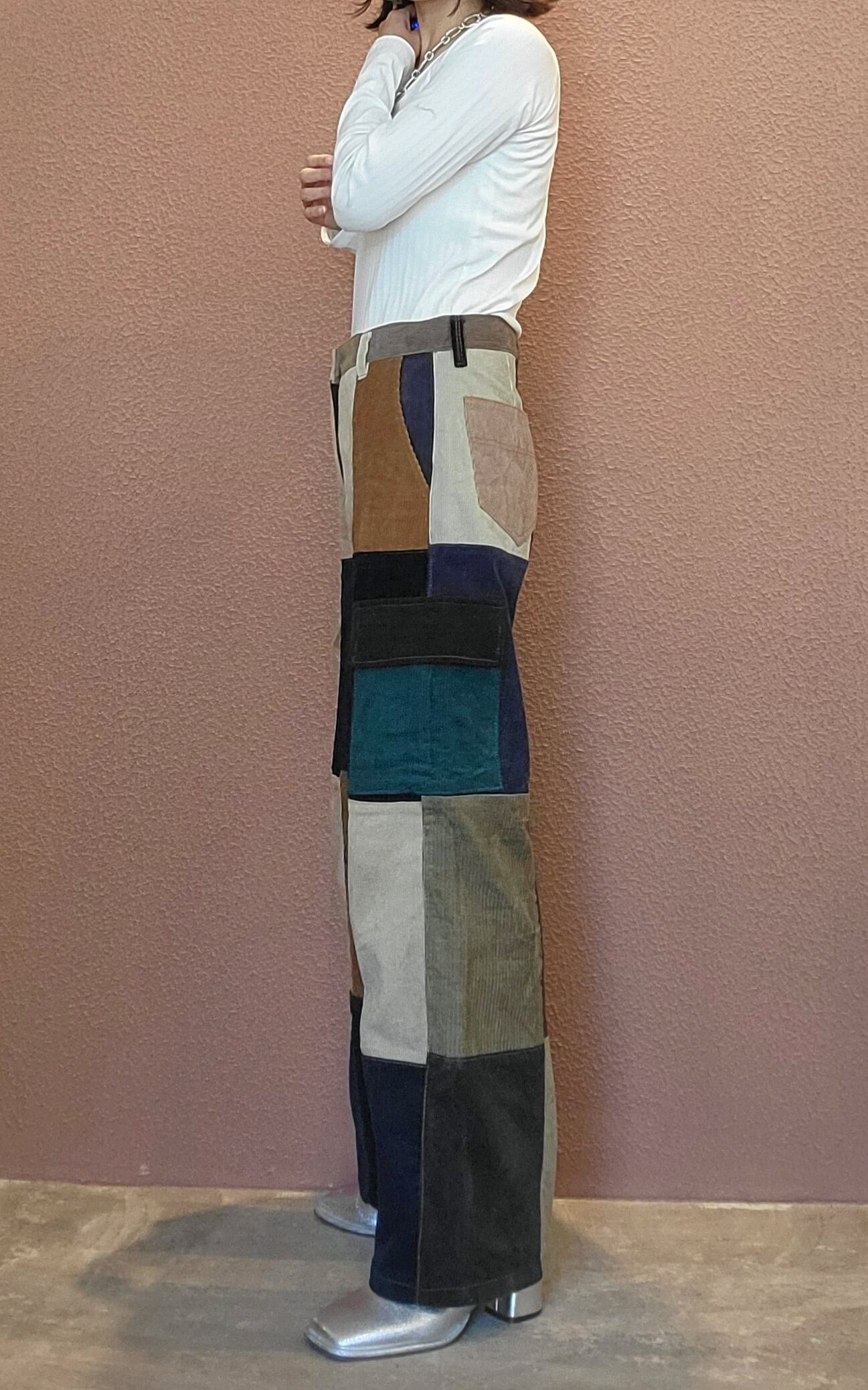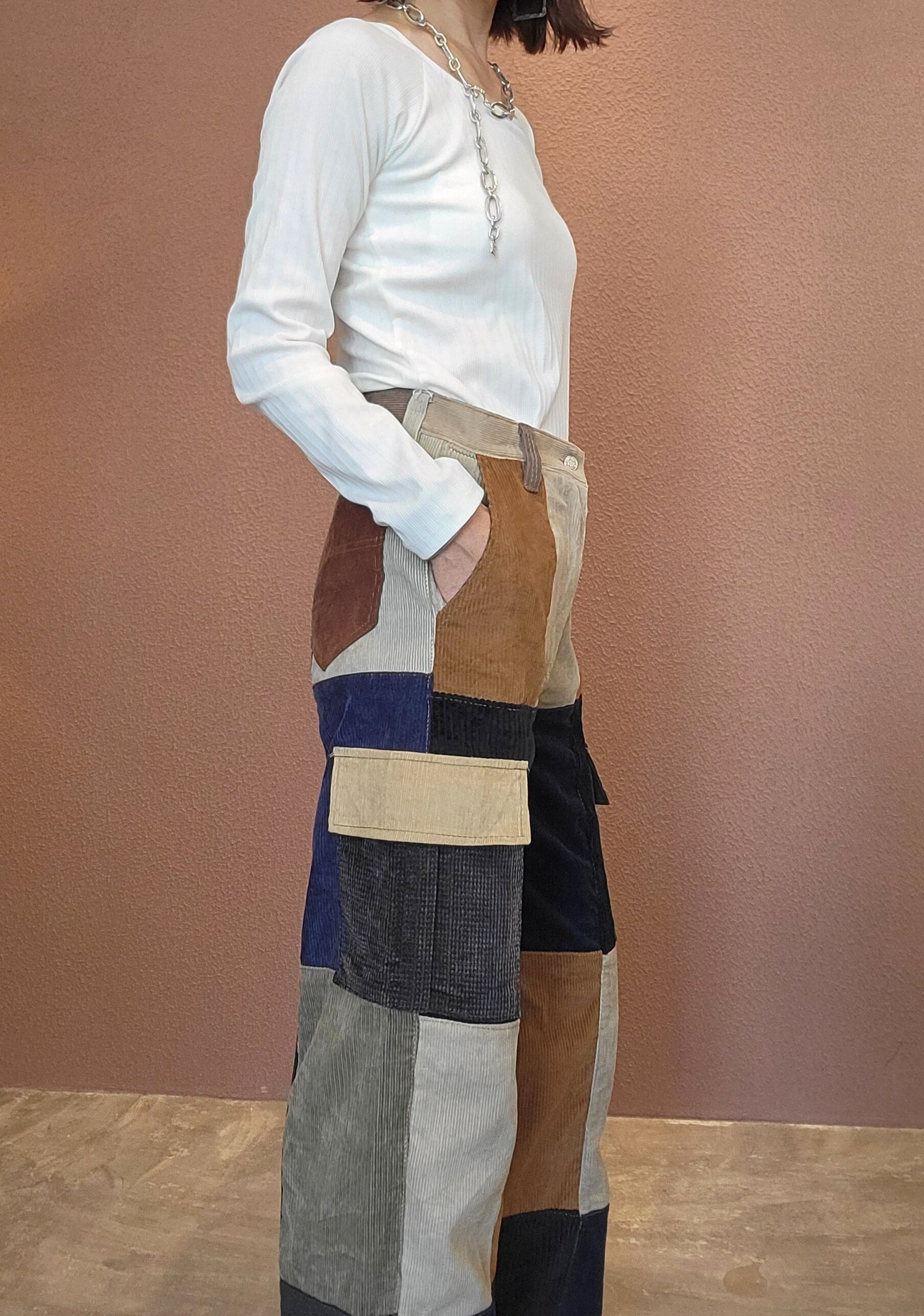 RMPT282 コーデュロイパッチワークリメイクカーゴパンツ a